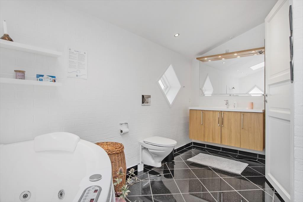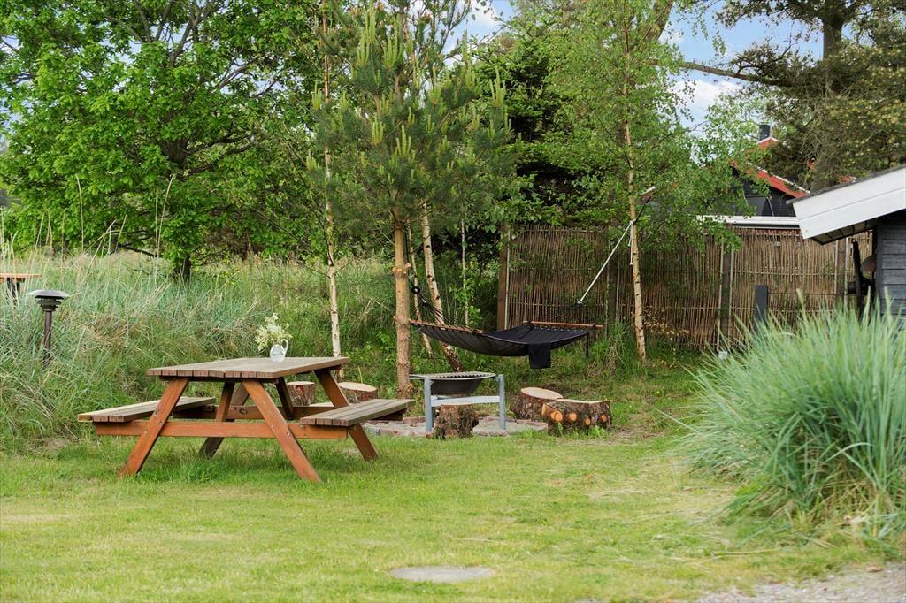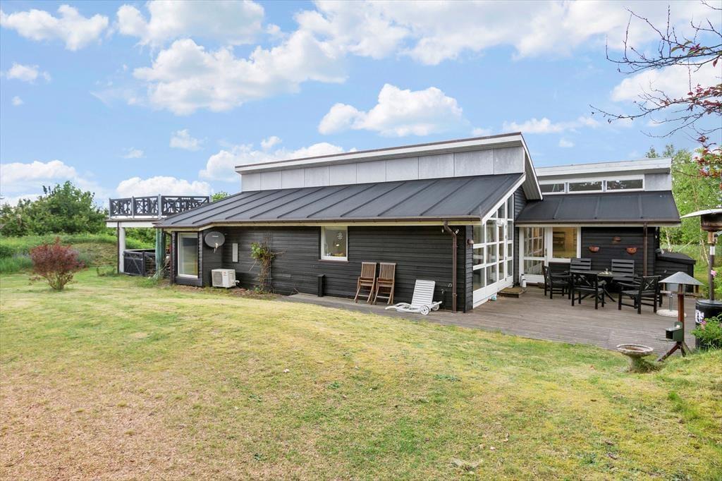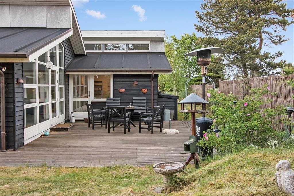Udenfor finder du flere dejlige terrasseområder, hvor du kan sidde og nyde de rolige omgivelser. Den store træterrasse er det perfekte sted til både solbadning om dagen og afslappende middage under åben himmel om aftenen. Her kan du høre fuglene synge, mærke den friske luft og lade tankerne flyve. Den smukke naturgrund er ideel til både afslapning og leg, og med husets placering har du en fantastisk udsigt over landskabet, som giver en følelse af at være helt i ét med naturen. Og med kun 250 meter til stranden, kan du hurtigt tage en dukkert i det klare vand eller gå en lang tur langs kysten.