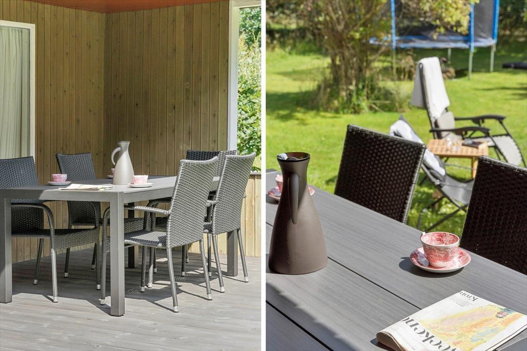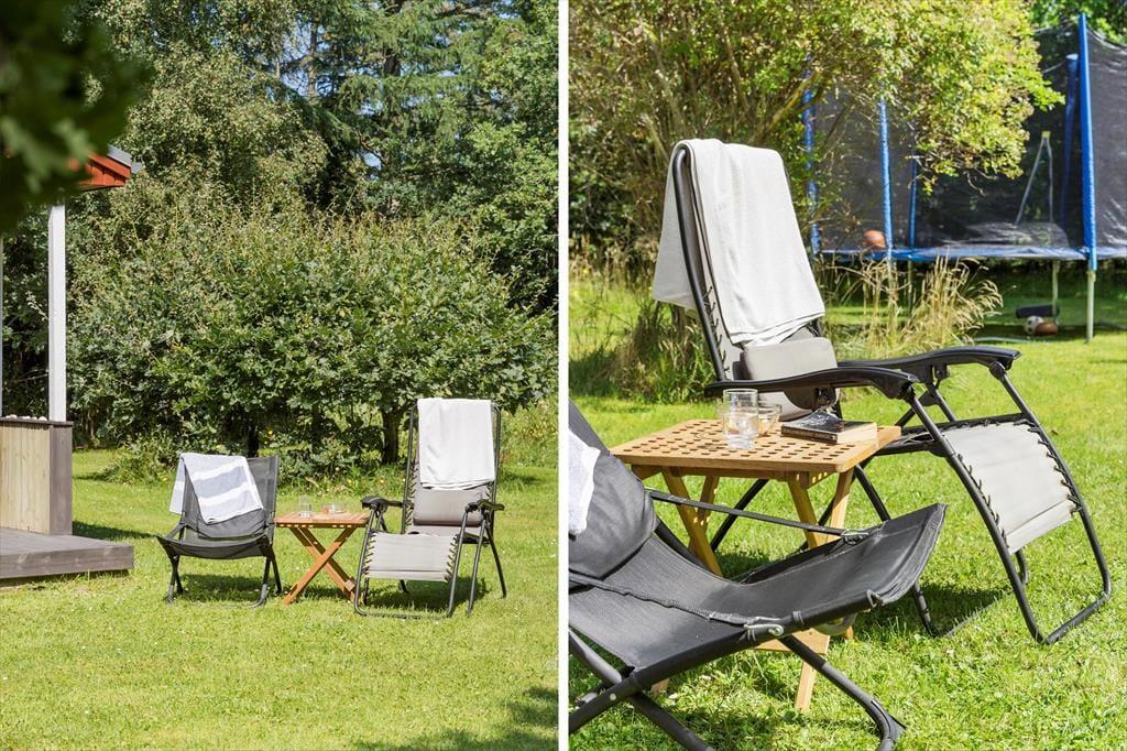 Den 2500 m2 store naturgrund er en herlig oase, når temperaturerne er lune, og der er feriestemning i luften. Den delvist overdækkede terrasse indbyder til at nyde solskinsvejret på helt tilbagelænet vis, og du kan også tage en kop kaffe og din medbragte bog med ud på græsplænen for at sætte dig der. På græsset er der masser af plads til fysiske udfoldelser, og familien kan blandt andet dyste i badminton og basket, mens de yngste kan brænde energi af på trampolinen. De lyse sommeraftener kan også passende foregå ude i det fri, og dagens sidste måltid kan helt oplagt blive tilberedt på gasgrillen.