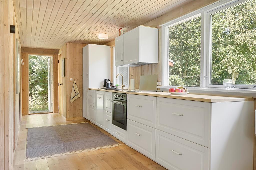 Det 69 m2 store hus har ligget her på Kuskevej 5 siden 1972, og efter seneste istandsættelse i 2024 er der fundet den helt rette balance mellem klassisk sommerhuscharme og moderne komfort inden døre. Planløsningen byder på et badeværelse og tre soveværelser med i alt fem sengepladser, og der er også et ekstra rum med skrivebord, hvis du får brug for arbejdsro i løbet af dit ophold. Et veludstyret og rummeligt køkken er integreret med stuen, så det er nemt at tilkalde hjælp, så I kan være flere om at kræse om madlavningen. Både spisebordet og sofaafdelingen er hyggelige steder at samles, og hvis det ikke er ludo eller krydsogtværser, der skal underholde jer om aftenen, er der mulighed for at se film på Apple TV’et.