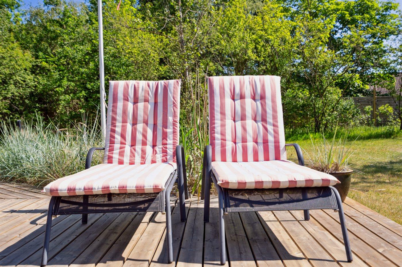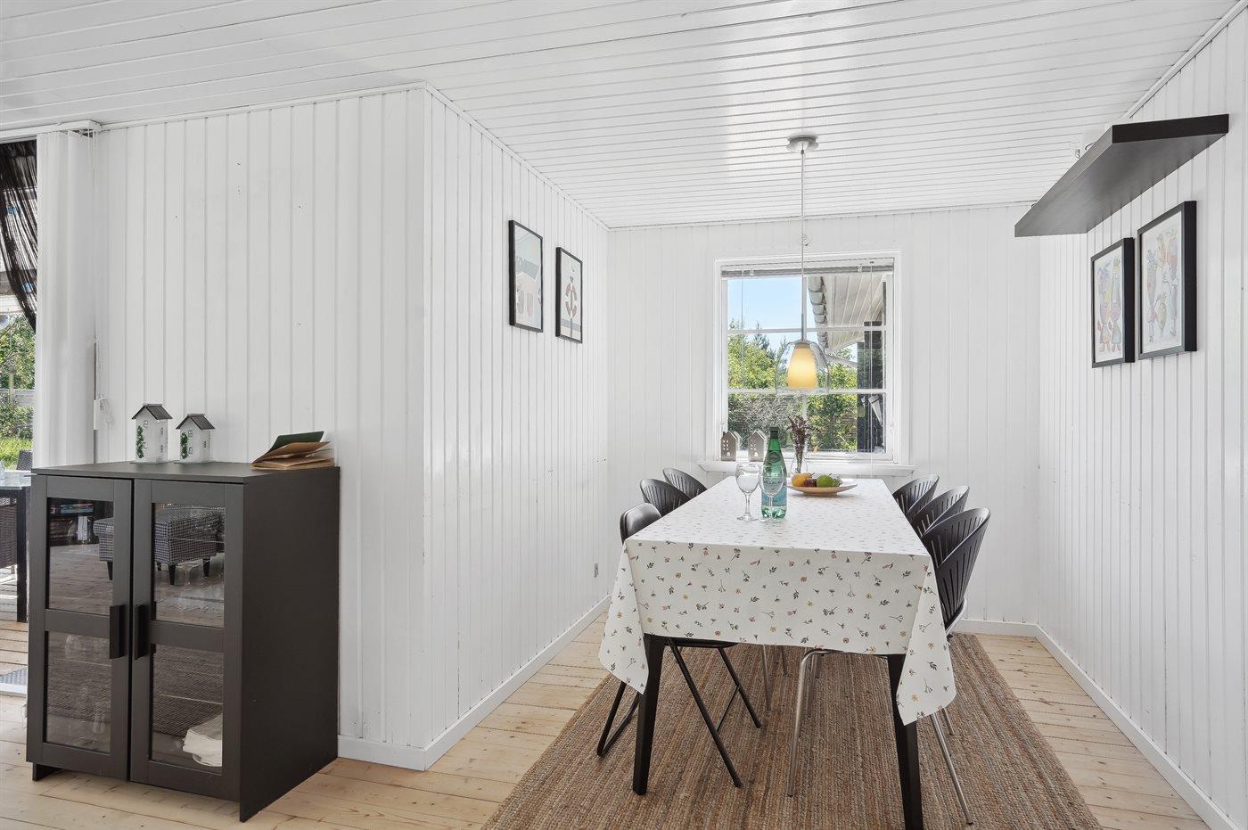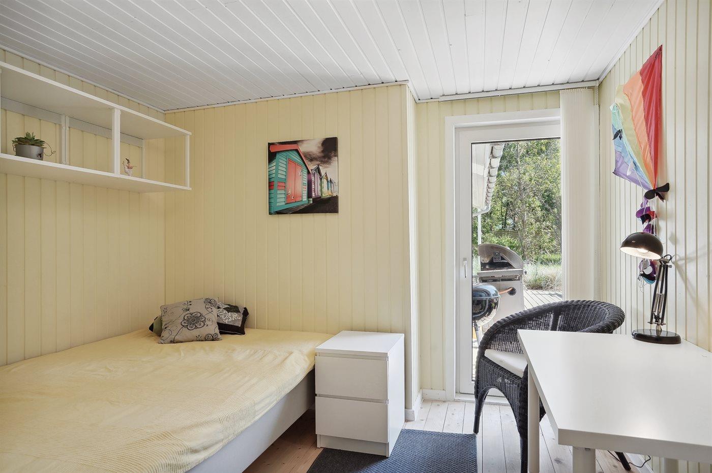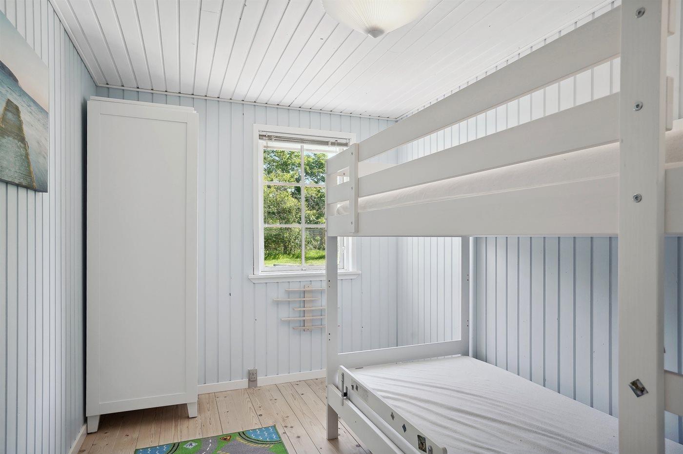 Der er i alt 3 soveværelser. Sovepladserne fordeler sig på: 4 sovepladser i dobbeltsenge. 2 sovepladser i køjeseng. Derudover er der 1 stk. barneseng.