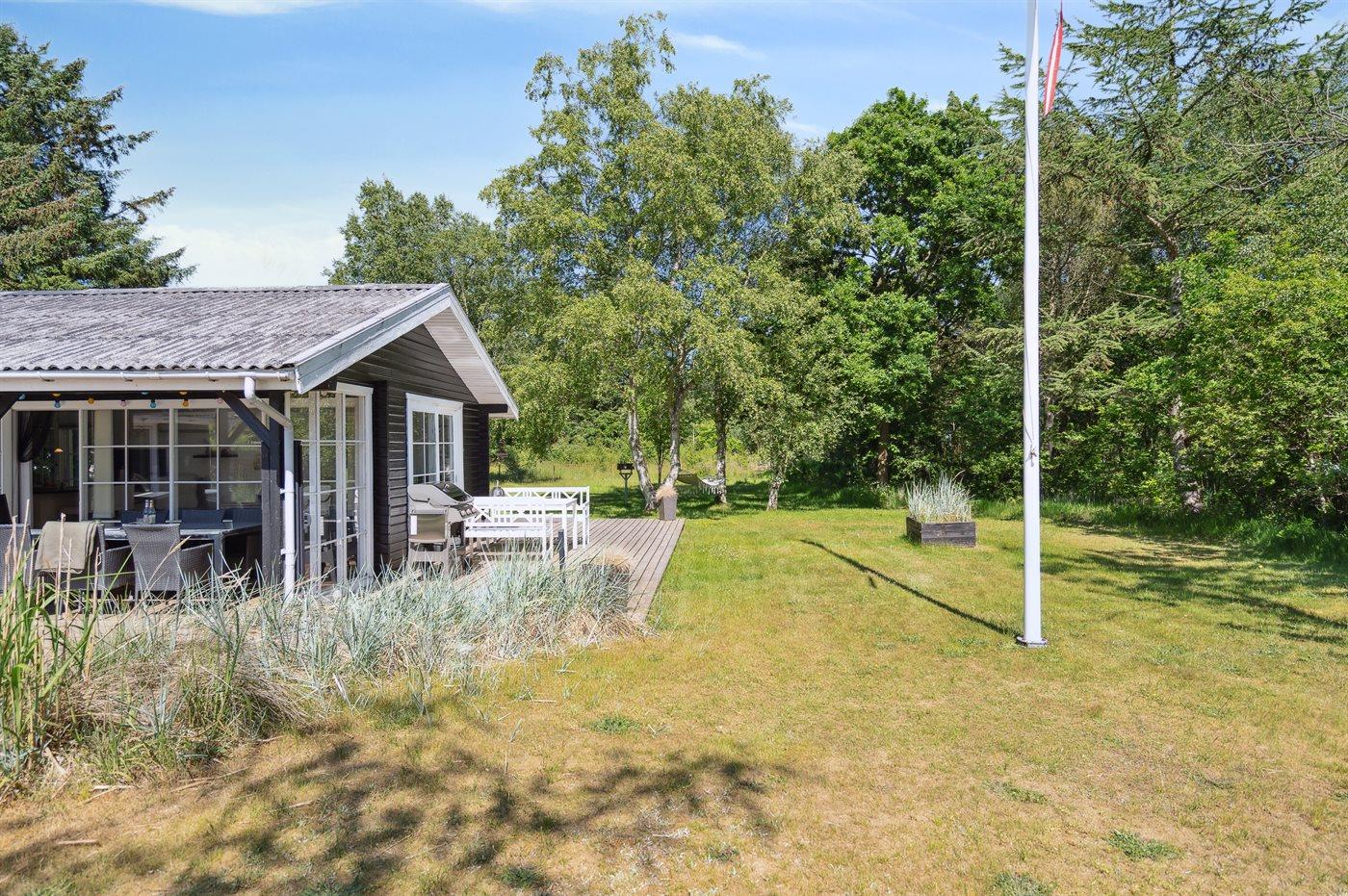 Ferieboligen er beliggende på en 2909 m² stor naturgrund. Grunden er indhegnet. Der er 600 m til havet. Nærmeste forretning er beliggende i en afstand af 600 m. Der er en golfbane i en afstand af 7000 m. Til ferieboligen hører åbent terrasseareal. Desuden er der overdækket terrasse. Der ligger en legeplads i en afstand af 600 m. Bålsted. Grill til rådighed. Parkering ved ferieboligen.