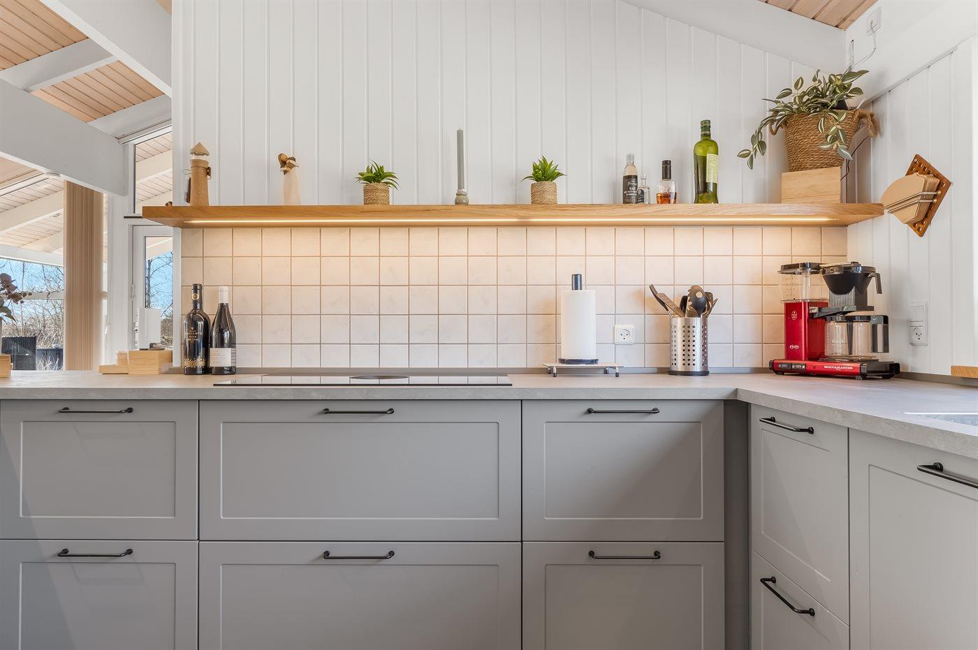 Køkkenet er udstyret med 1 køleskab. Der er 4 induktionskogeplader, varmluftovn, mikrobølgeovn samt opvaskemaskine.