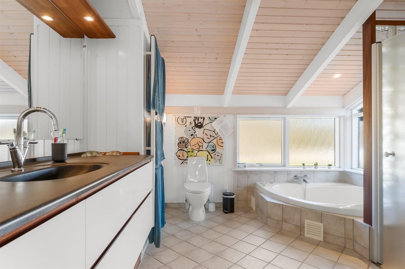 Der er 2 badeværelser med bruseniche og 2 toiletter. Der er gulvvarme på 2 badeværelser.
