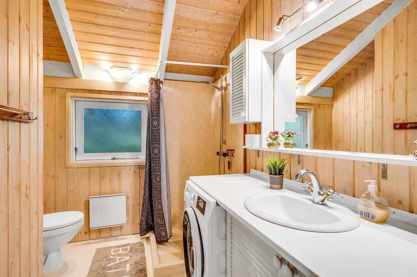 Der er 1 badeværelse med bruser og 1 toilet.. Der er gulvvarme på 1 badeværelse.