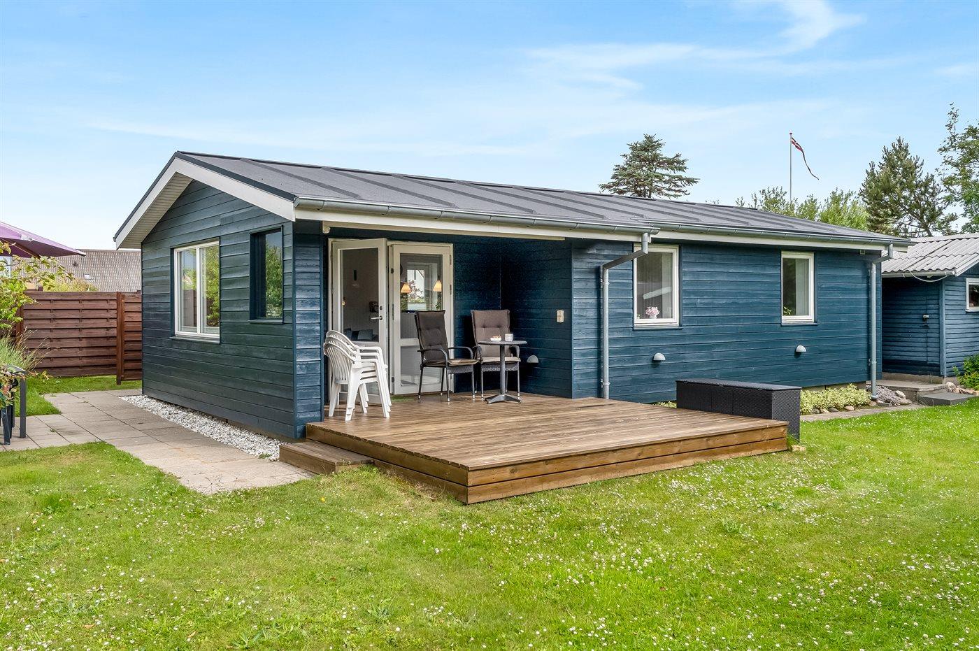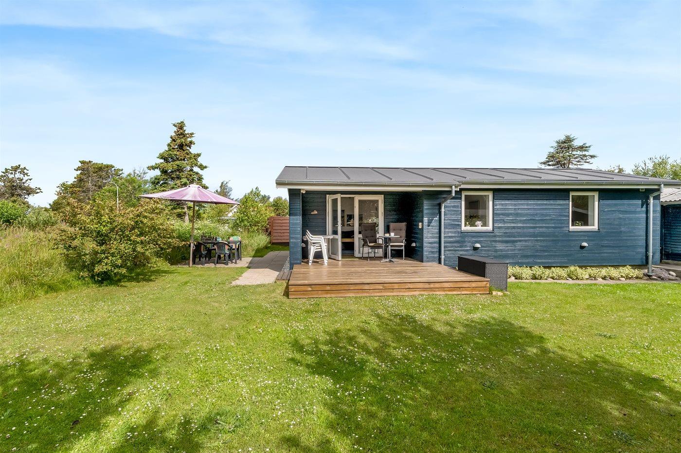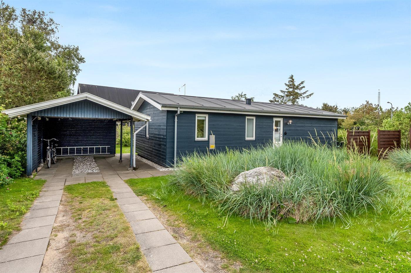Ferieboligen er beliggende på en 700 m² stor naturgrund. Der er 100 m til havet. Nærmeste forretning er beliggende i en afstand af 1100 m. Til ferieboligen hører åbent terrasseareal. Desuden er der overdækket terrasse. Grill til rådighed. Der er carport til rådighed. Parkering ved ferieboligen.