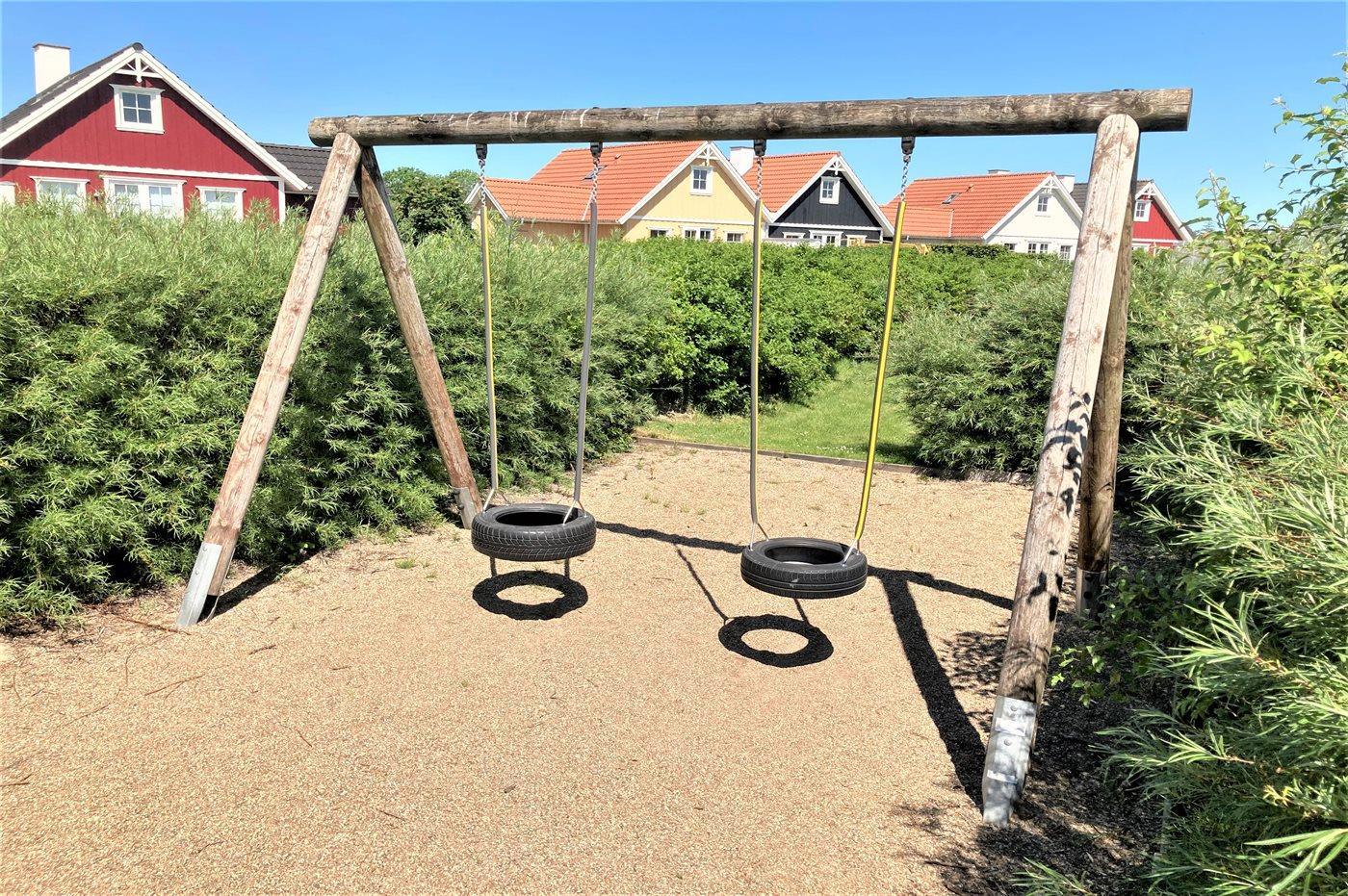 Ferieboligen er beliggende på en 102 m² stor naturgrund. Der er 300 m til havet. Der er en badebro i nærheden. Nærmeste forretning er beliggende i en afstand af 3300 m. Til ferieboligen hører åbent terrasseareal. Udgang til altan. Der ligger en legeplads i en afstand af 35 m. Grill til rådighed. Parkering ved ferieboligen.