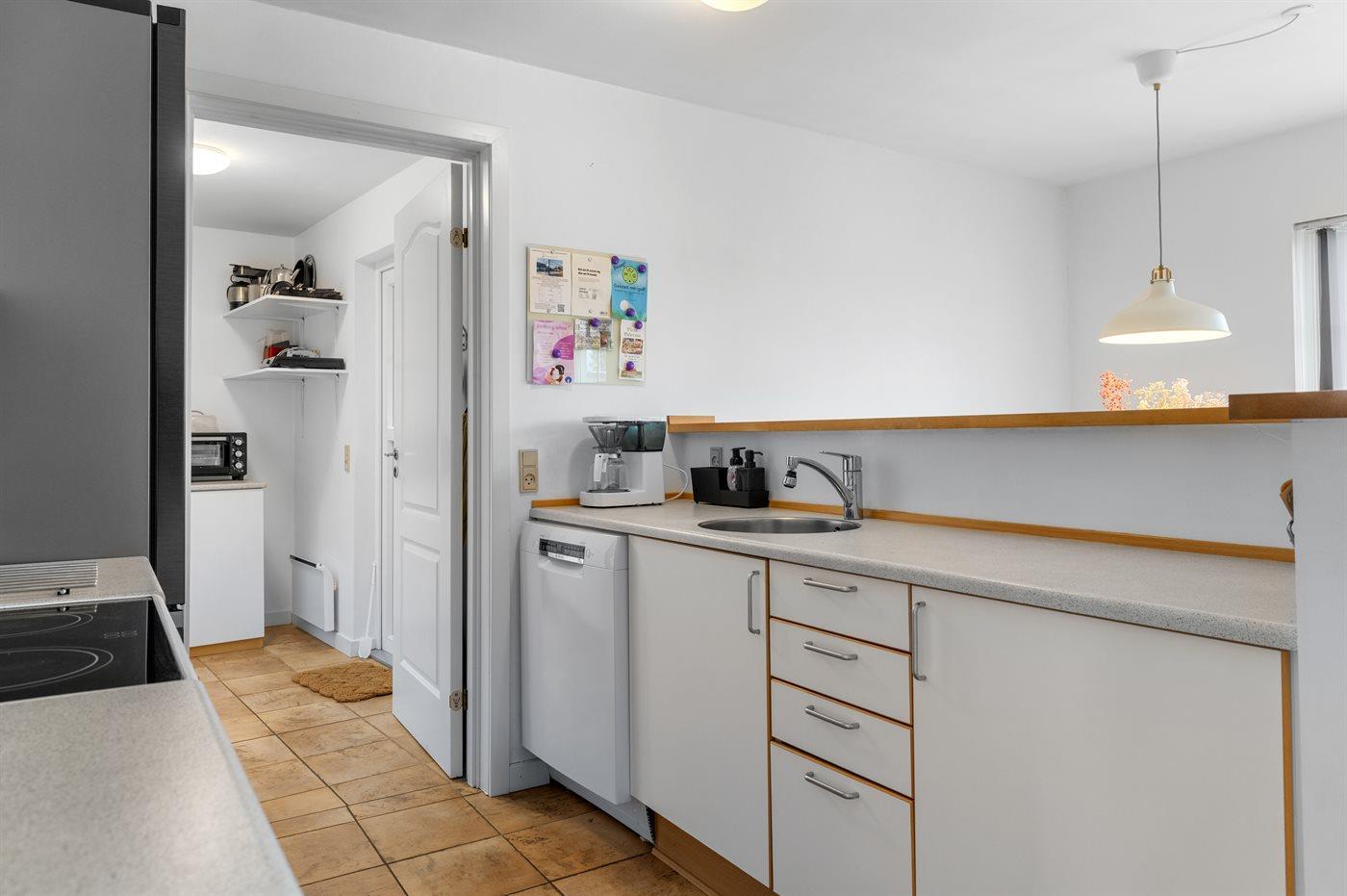 Køkkenet er udstyret med 1 køleskab. Der er 4 keramiske kogeplader, varmluftovn, mikrobølgeovn samt opvaskemaskine.