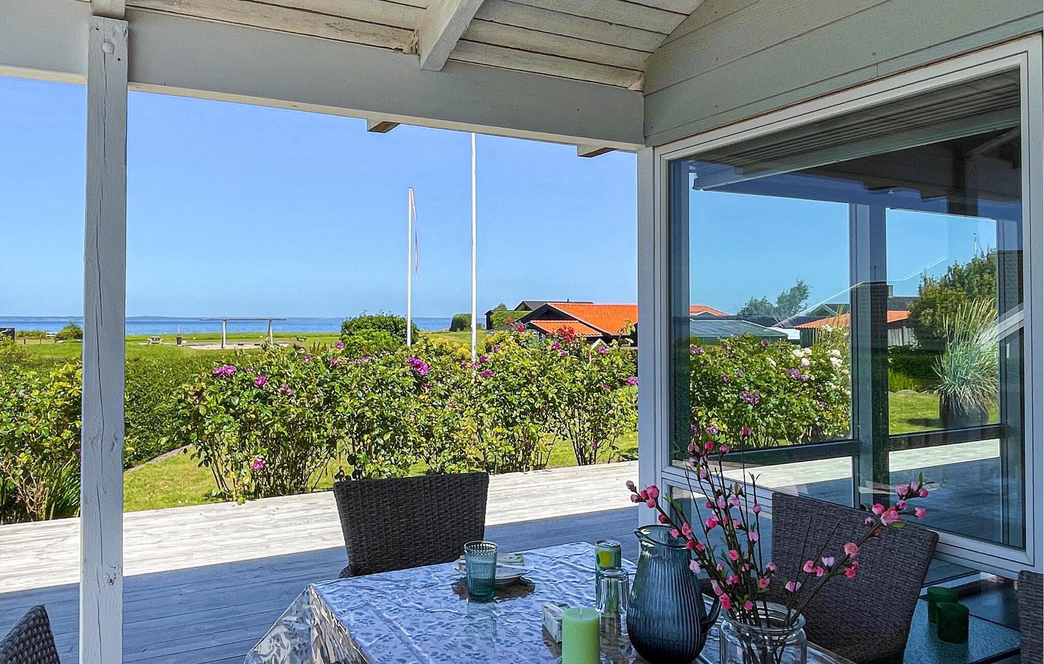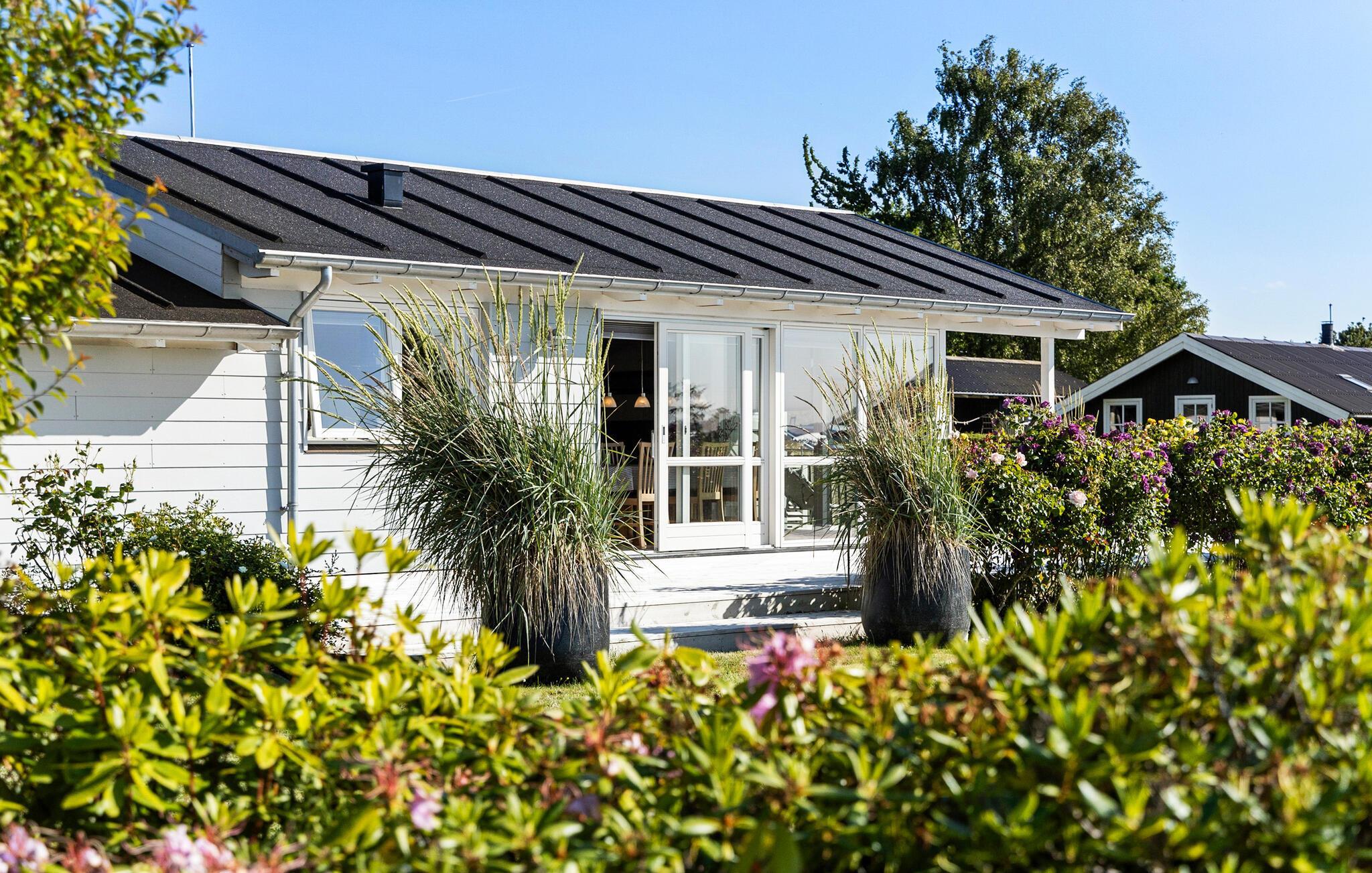 Moderne feriehus med panoramaudsigt over havet, tæt på strand og omgivet af en skøn have i Brenderup Fyn.