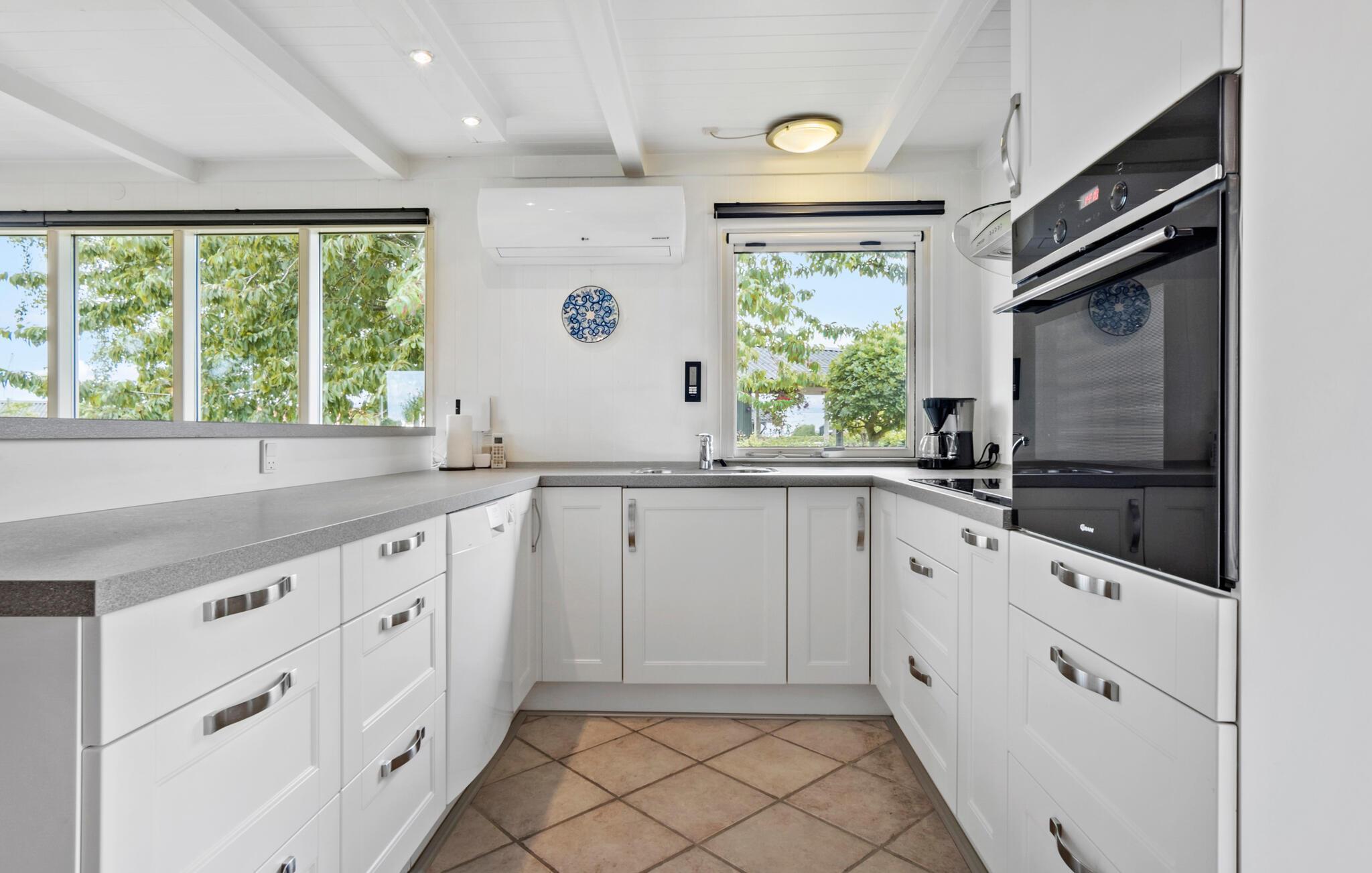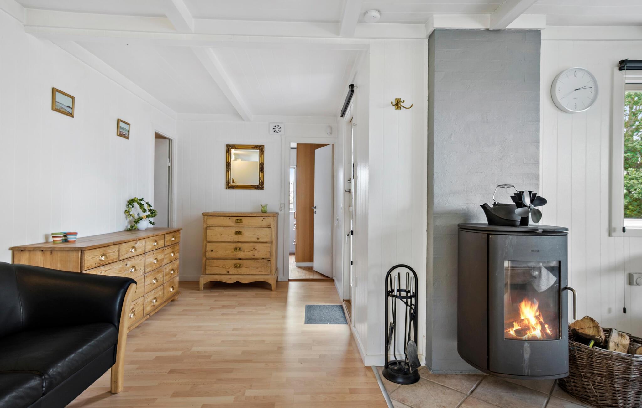 I finder hurtigt fred og ro i dette hyggelige hus med direkte havudsigt. Det lyse træloft og Gulv til loft-vinduerne skaber en lys, åben atmosfære. Det store træbord giver plads til at spille spil, spise eller snakke sammen, mens sofagruppen og lænestolen lægger op til at læne jer tilbage og slappe af. gør lækre retter klar i det moderne køkken og server dem med et glas vin.
