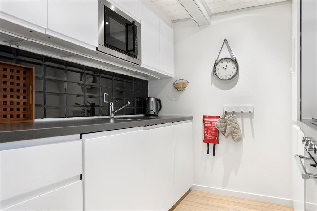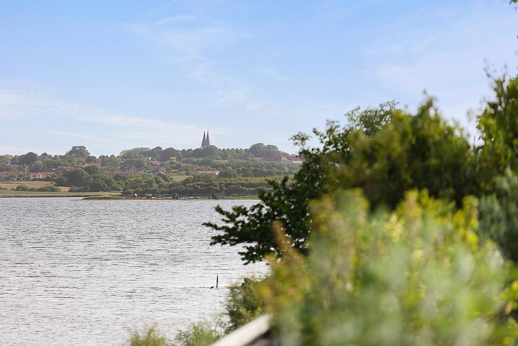 Gå udenfor, og oplev den magiske stemning, der hersker på grunden direkte ned til fjorden. Den velplejede have byder på flere skønne kroge, hvor du kan nyde solens varme eller mærke brisen fra vandet. På den store terrasse kan du samle familien til hyggelige grillmiddage, mens solen går ned over fjorden. Har du lyst til at tage en dukkert, skal du blot tage et par skridt ned til vandkanten – her kan du starte dagen med et forfriskende morgenbad eller slutte den med en rolig aftensvømmetur. Omgivelserne byder på fred og idyl, som er perfekte til afslapning og fordybelse.