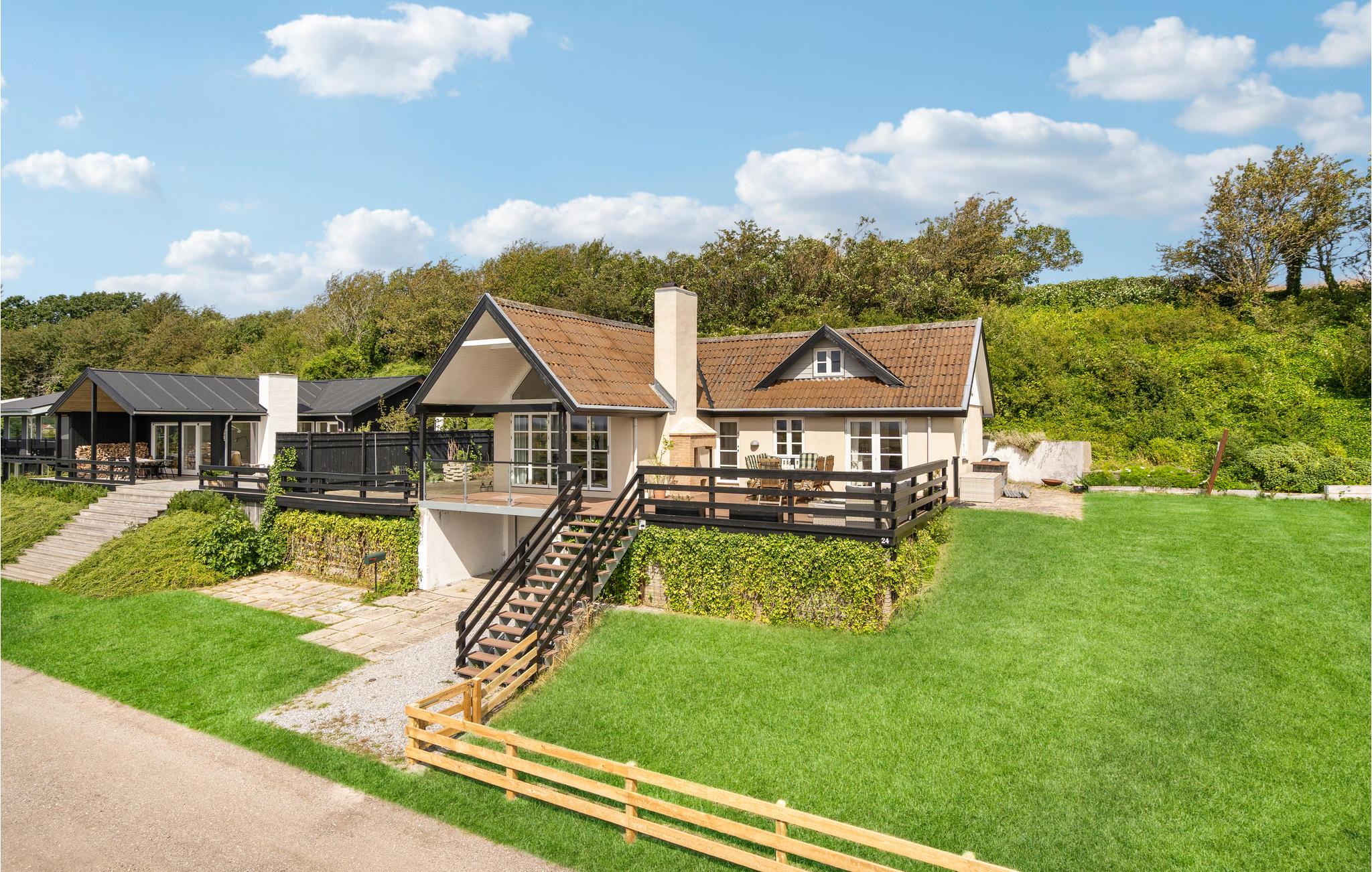 Smukt feriehus ved Brydegård Strand med havudsigt, terrasse og moderne nordisk indretning, perfekt til afslapning og naturoplevelser.