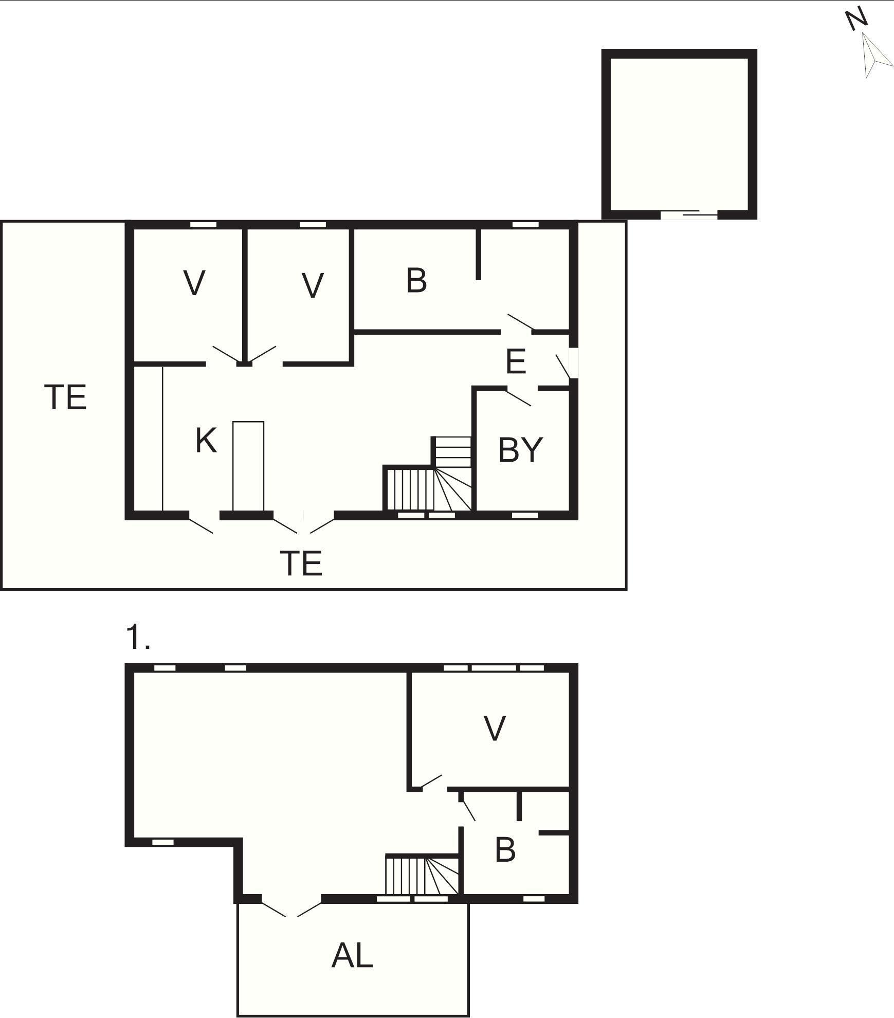 I stueplan finder I to soveværelser, et badeværelse, et bryggers og et stort køkken/alrum, som danner rammen om alle aktiviteter på denne etage. Fra alrummet er der direkte adgang til den rummelige terrasse, hvorfra I kan nyde synet af en lille sø. Køkkenet er veludstyret med bl.a. keramiske kogeplader, varmluftsovn og opvaskemaskine.