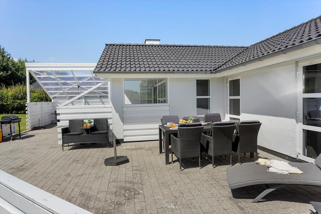 Udenfor venter et skønt og børnevenligt udeområde med plads til både leg og afslapning. Nyd feriedagene på den delvist overdækkede terrasse, hvor du kan grille og samles til måltider under åben himmel, mens børnene boltrer sig i sandkasse og på gyngen. Der er også både petanquebane og bålsted, så I kan hygge jer sammen i aftenskæret med ristede skumfiduser og gode historier. Den tilhørende carport gør det nemt og bekvemt at komme til og fra, og det grønne område omkring huset giver en fredelig ramme for ferien, uanset om I er til afslapning i solen eller aktiviteter for store og små.