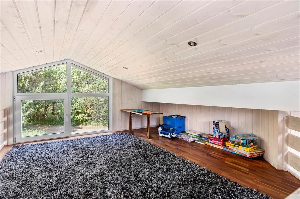 Sommerhuset byder på en lys og venlig atmosfære, hvor feriestemningen straks indfinder sig. Aktivitetsrummet er husets hjerte og sikrer mange timer med sjov og samvær – her kan både børn og voksne dyste i bordtennis eller pool. Stuen er hyggeligt indrettet med bløde møbler og en varmende brændeovn, der inviterer til afslappende aftener med brætspil og hygge. Det åbne køkken-alrum gør madlavningen til en social oplevelse, hvor hele familien kan være med, mens du tryller lækkerier frem. Soveværelserne er indrettet med fokus på komfort, så alle kan vågne op veludhvilede og klar til endnu en skøn dag.