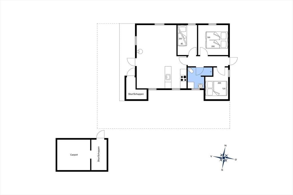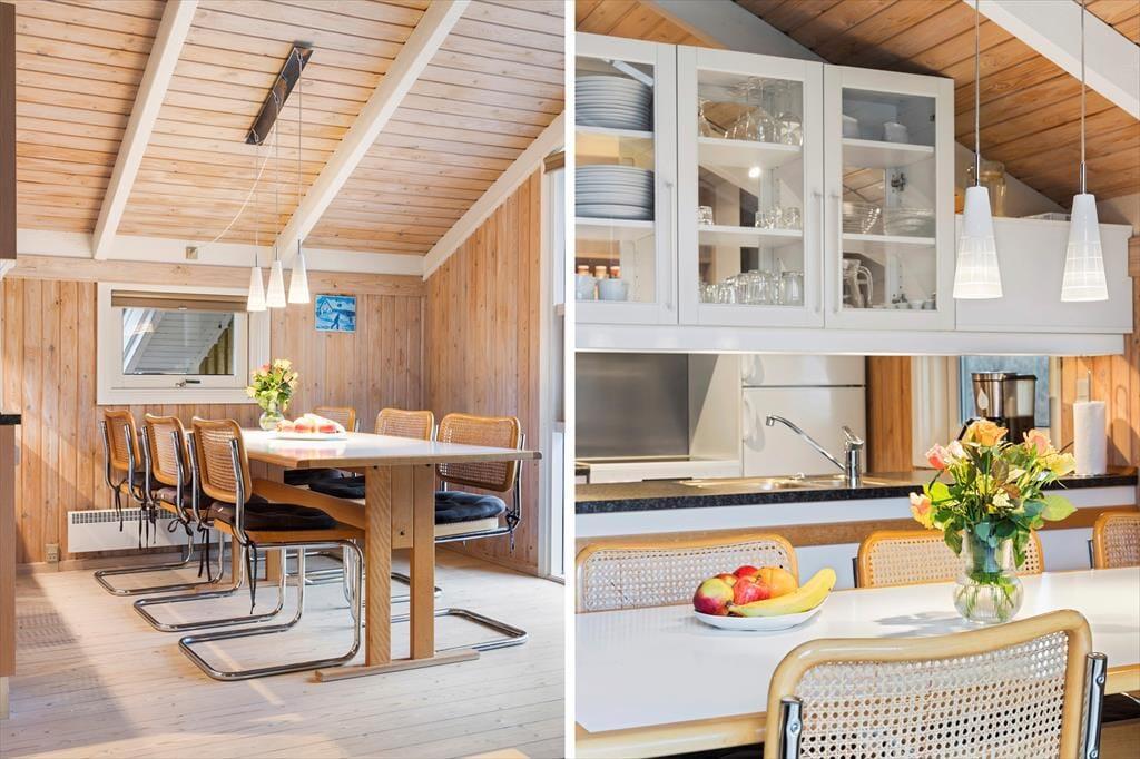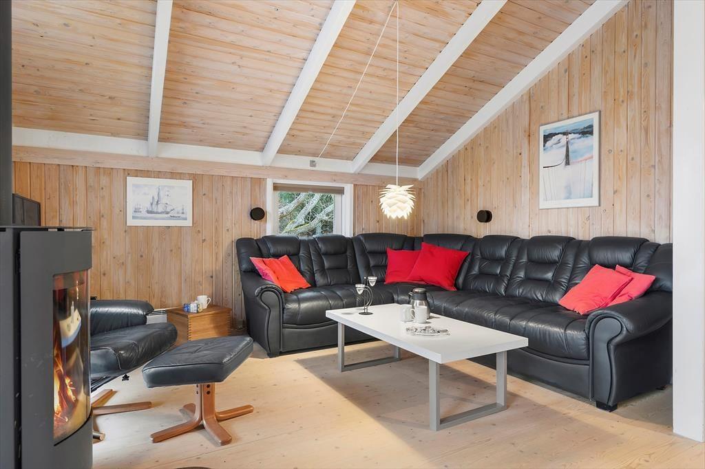Sommerhuset byder på en indbydende og lys atmosfære, hvor du straks vil føle dig hjemme. Den hyggelige stue har store vinduer, der lukker naturen indenfor, og her kan du slappe af i bløde møbler efter en dag med aktiviteter i det fri. I den åbne opholdsafdeling finder du også spisebordet, hvor dagens måltider kan nydes i godt selskab. Køkkenet er godt udstyret, så du kan tilberede alt fra en let frokost til en stor middag. Når det er tid til at hvile ud, kan du trække dig tilbage til et af husets hyggelige soveværelser, hvor du kan lade op til en ny dag fyldt med oplevelser. Badeværelset er funktionelt og lyst, så du har de bedste forudsætninger for en komfortabel ferie.