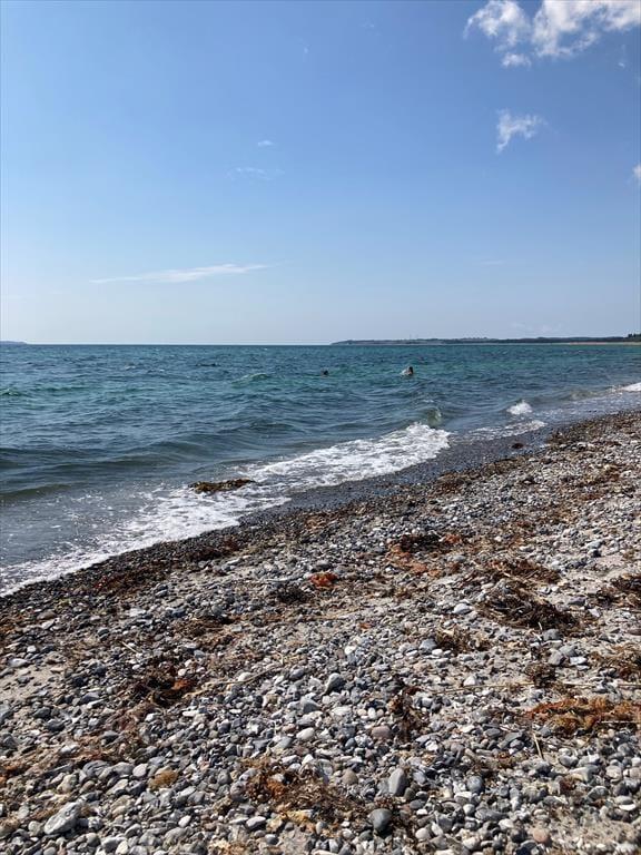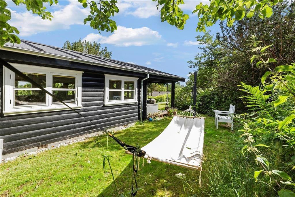 Hyggeligt sommerhus i Ebeltoft med brændeovn, internet og trampolin nær stranden.