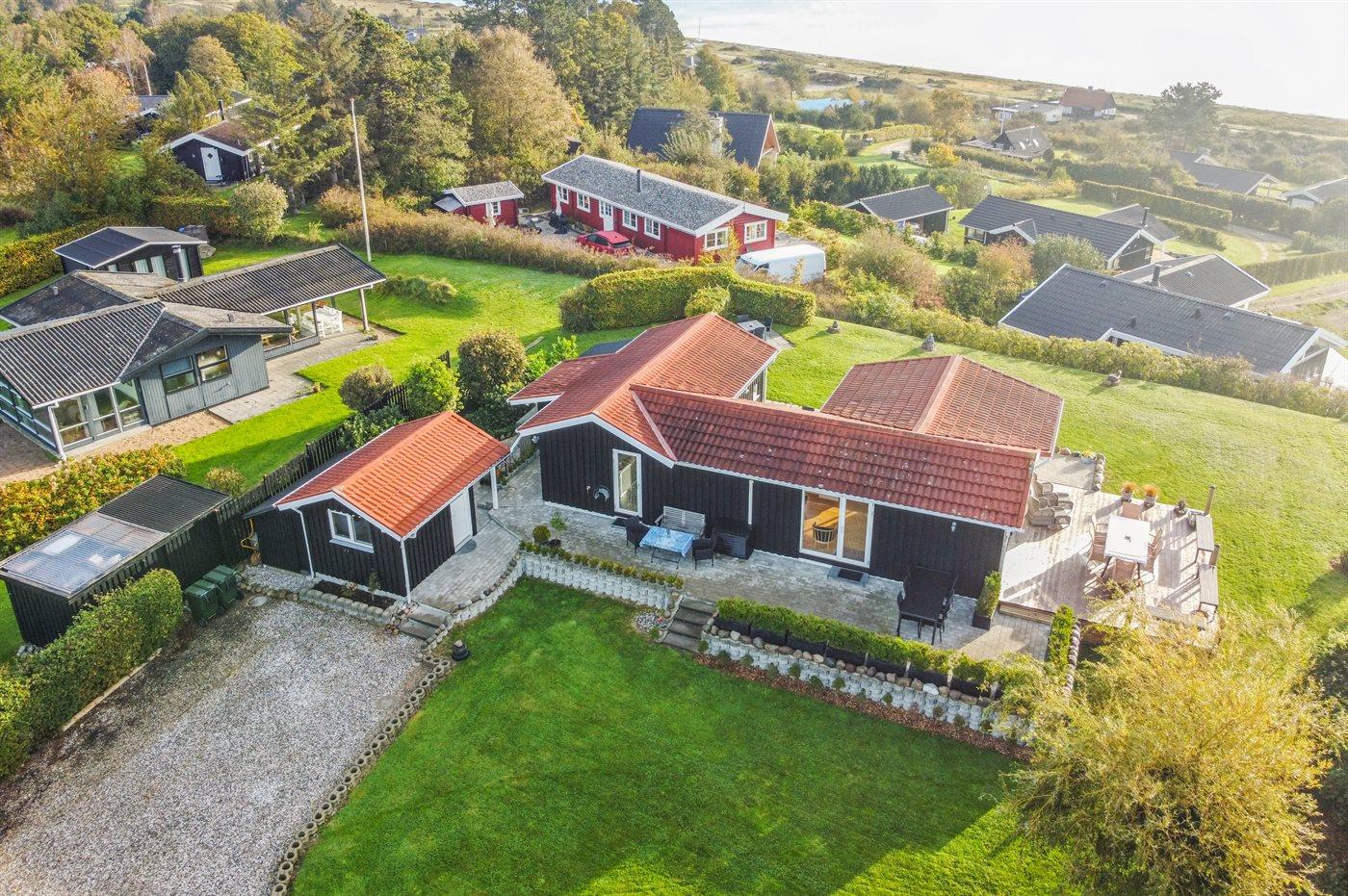 Ferieboligen er beliggende på en 1200 m² stor naturgrund. Der er 300 m til havet. Nærmeste forretning er beliggende i en afstand af 8000 m. Til ferieboligen hører åbent terrasseareal. Der er redskabsrum. Grill til rådighed. Parkering ved ferieboligen.