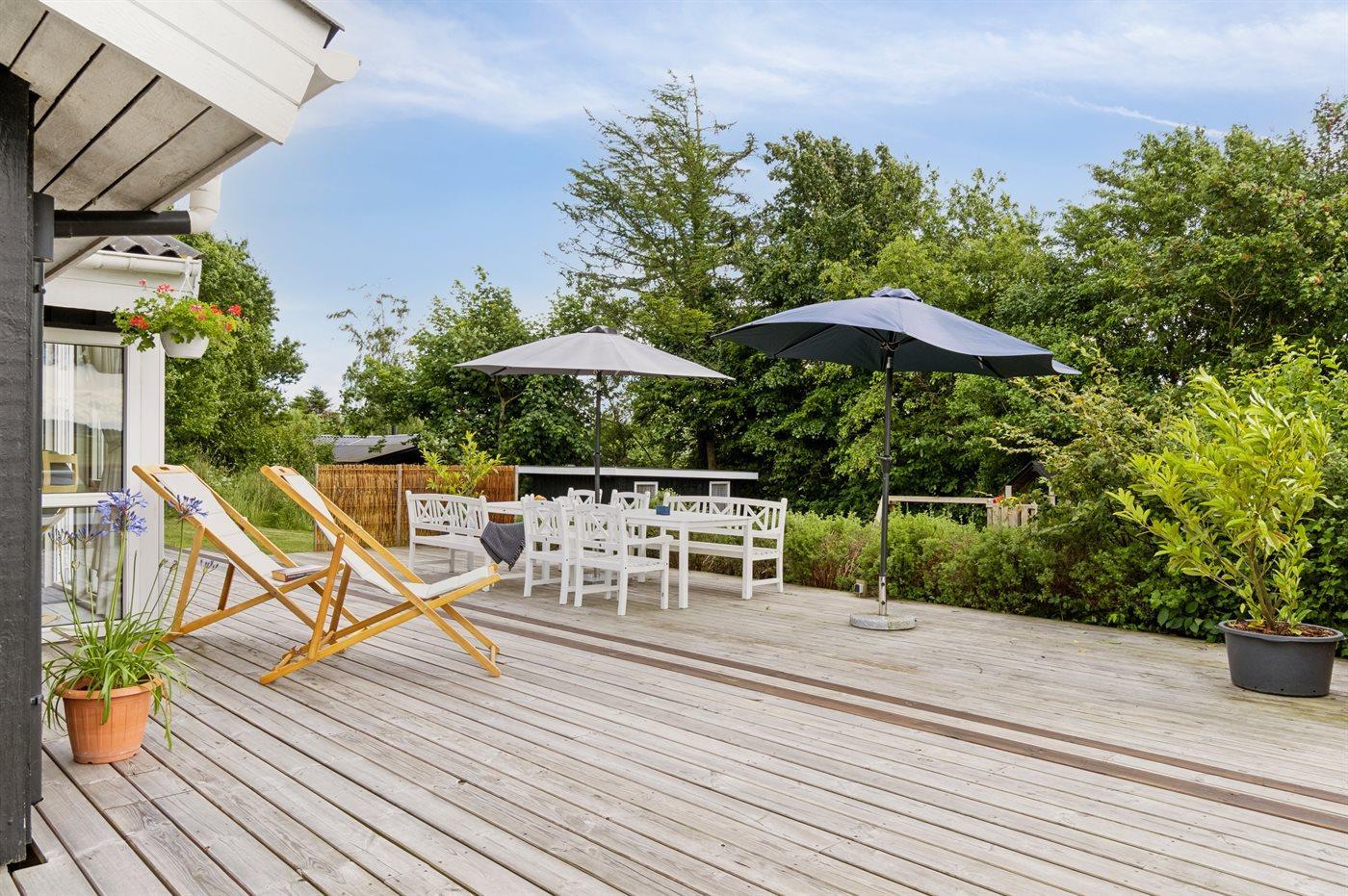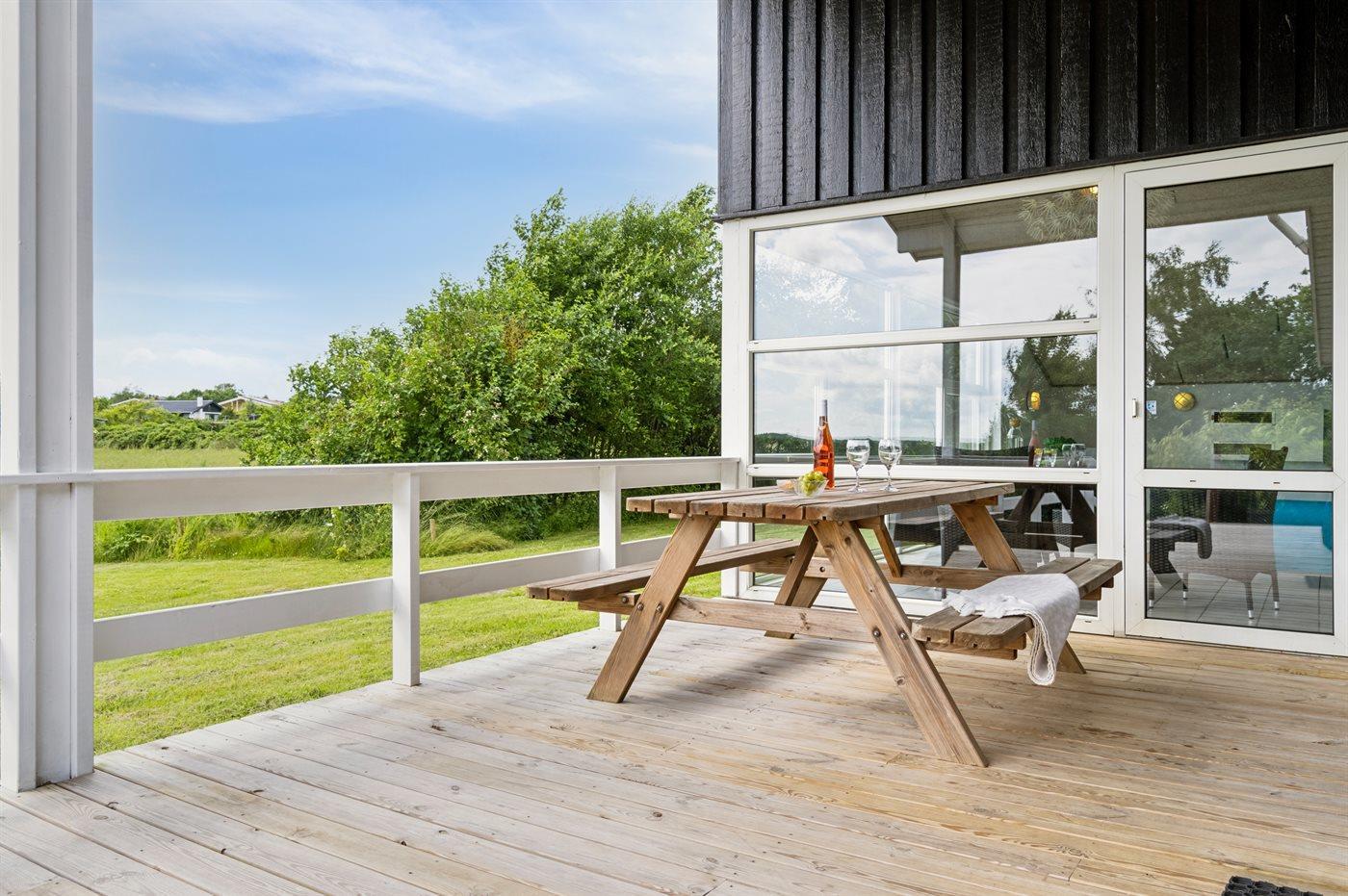Ferieboligen er beliggende på en 1499 m² stor havegrund. Der er 175 m til havet. Nærmeste forretning er beliggende i en afstand af 4000 m. Til ferieboligen hører åbent terrasseareal. Desuden er der overdækket terrasse. Gynge. Sandkasse. Legetårn. Rutchebane. Grill til rådighed. Parkering ved ferieboligen.