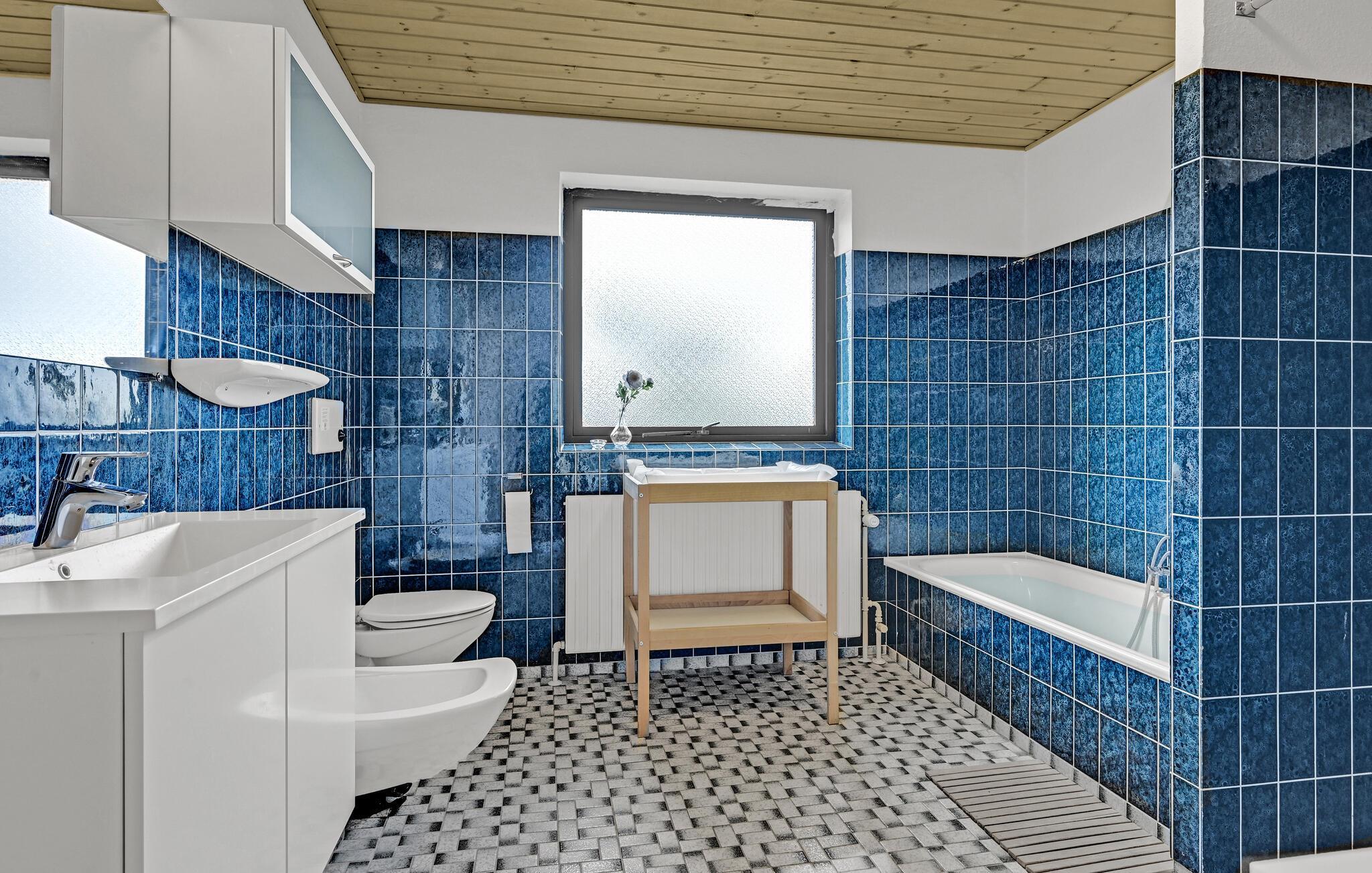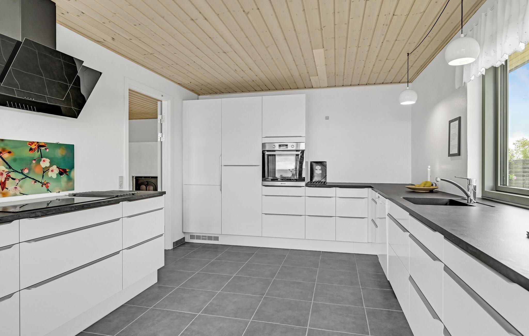 Der er lagt op til en skøn ferie i dette dejlige hus, hvor I kan glæde jer til den åbne, moderne indretning i lyse farver. Fra stuen har I en vidunderlig udsigt gennem de store vinduer. Det samme har I fra det veludstyrede køkken, hvor I kan spejde ud over bølgen blå, mens I tryller nogle lækre retter frem. Om aftenen kan I bare smide fødderne op i sofaen, mens I slapper af med en god film til lyden af ildens knitren i brændeovnen.