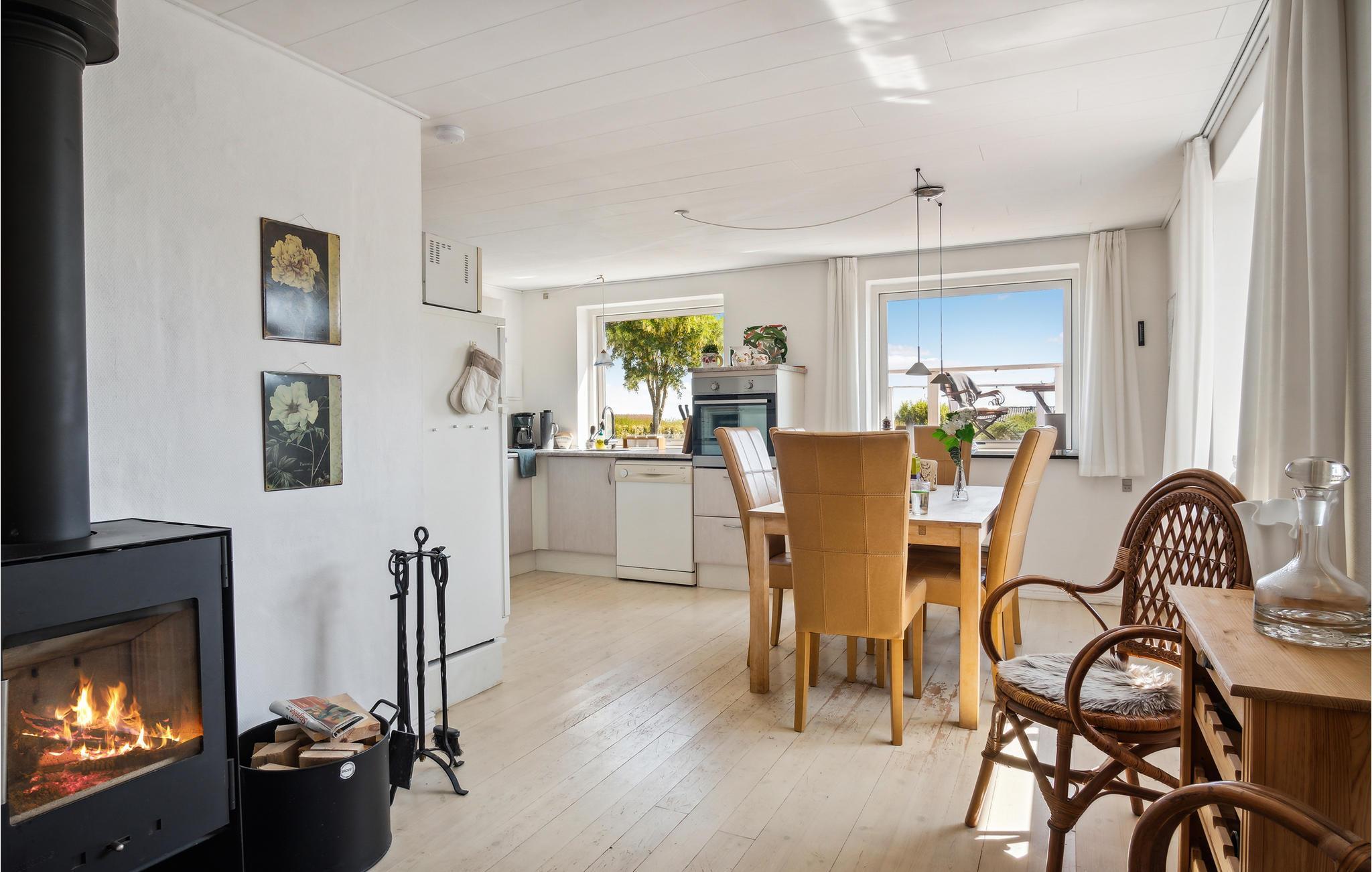 Velkommen til dette vidunderligt beliggende feriehus, kun en kort gåtur fra stranden. Huset er hyggeligt med et hjemligt interiør og lyse værelser. Bag med børnene i køkkenet og nyd den lækre hjemmebagte kage ved spisebordet, som hurtigt bliver familiens samlingspunkt. Om aftenen kan I sætte jer godt til rette i den store sofakrog og se en spændende film. Husk snacks! I kan nyde sommerdagene med friske jordbær og grillmad på terrasserne og slutte aftenen af med et glas vin og et spil kort. Når I tænder lyskæden, bliver det endnu mere stemningsfuldt. Drik dagens første kaffe på terrassen og nyd den fantastiske udsigt over havet. Gå en tur til stranden, som er en fornøjelse på alle tider af året.