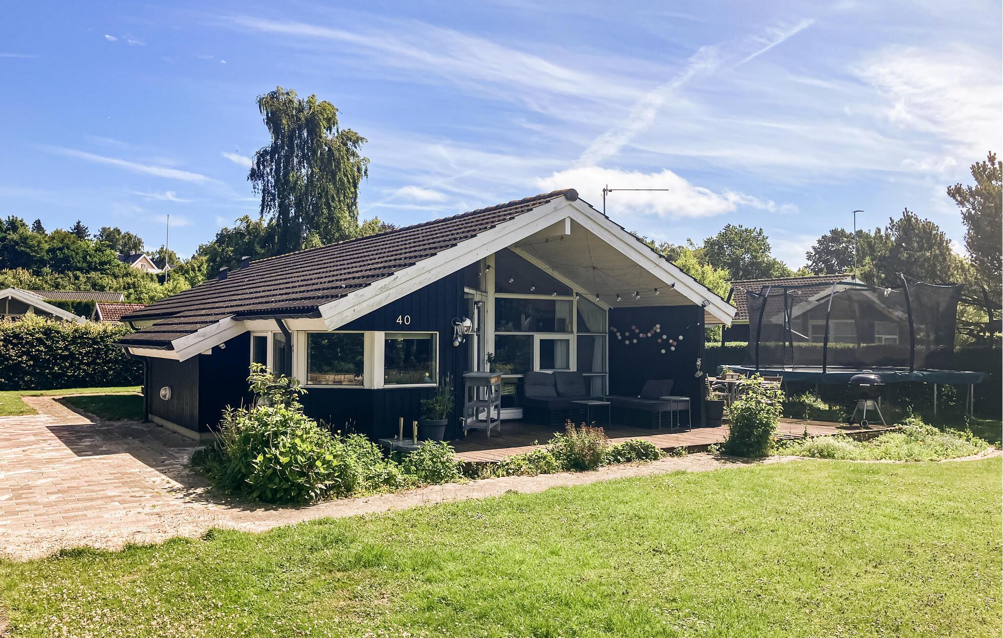 Hyggeligt feriehus i Dronningmølle med have, grill og trampolin tæt på strand og naturoplevelser.