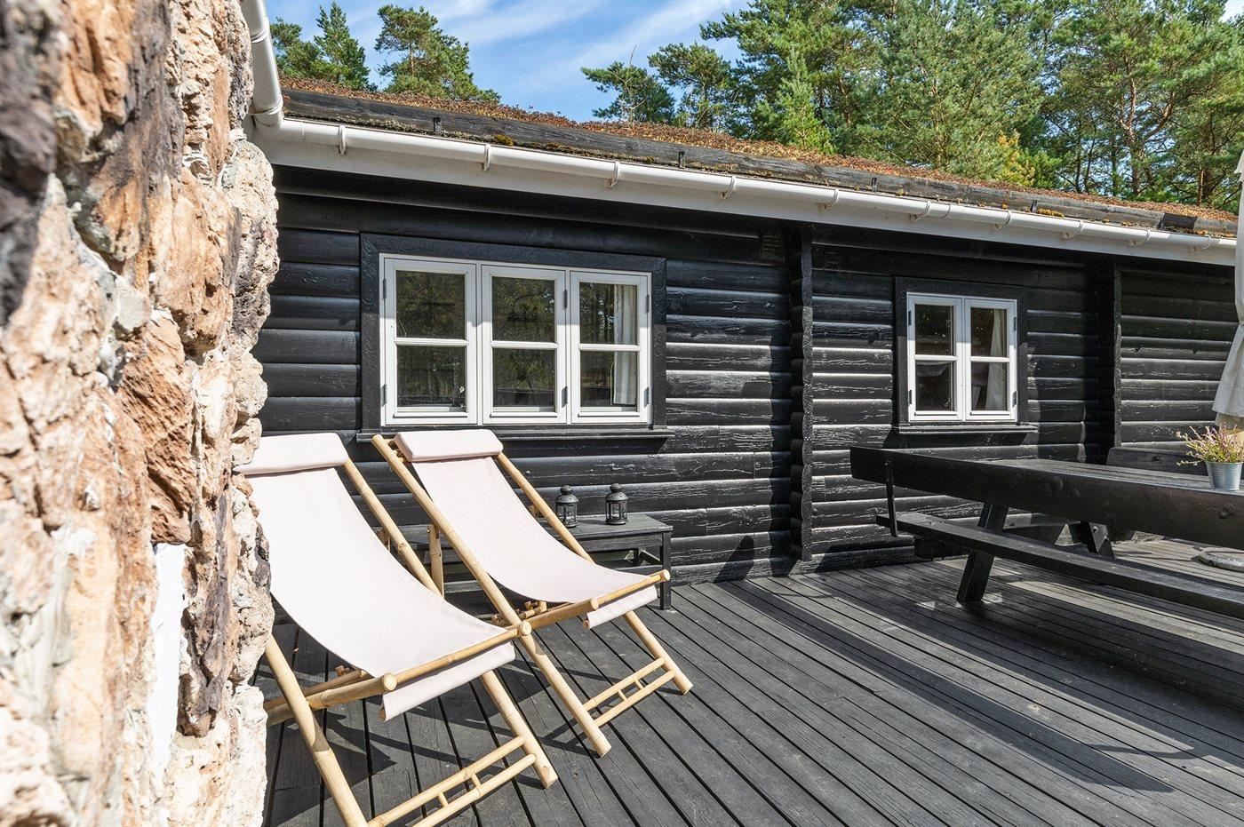 Dette dejlige bjælkesommerhus ligger på en ganske unik og ugenert naturgrund med blandet bevoksning og åbne lyngarealer grænsende op til et fredet naturområde. Fra grunden fører en sti direkte ned til den fine sandstrand ved Sommer Odde. Til huset hører et stort lukket og til dels overdækket terrasseareal.