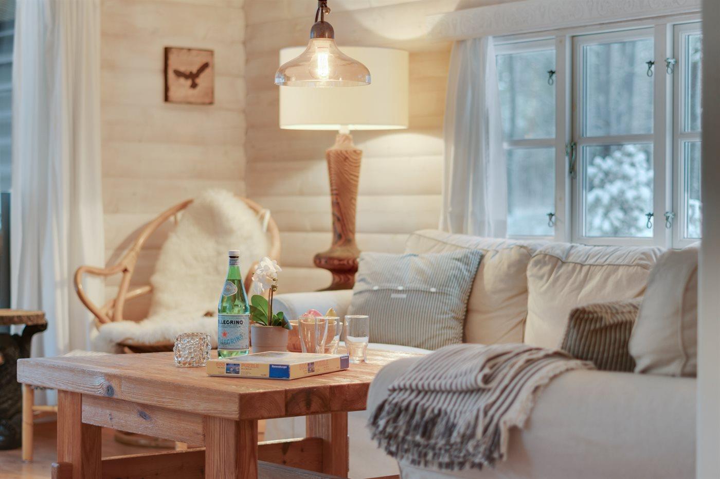 Hyggeligt bjælkesommerhus på 3377 m² naturgrund nær Dueodde strand med spa og sauna.