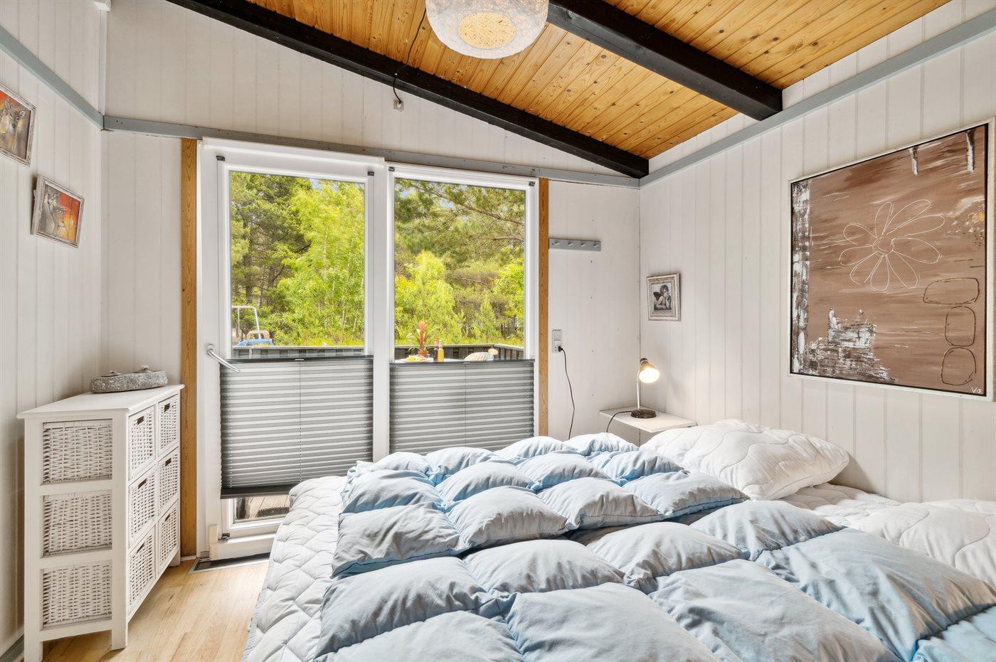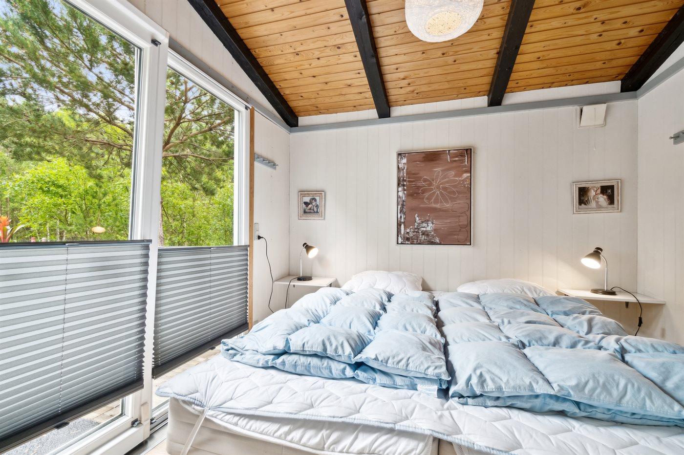 Der er i alt 2 soveværelser. Sovepladserne fordeler sig på: 2 sovepladser i dobbeltseng.2 sovepladser i elevationssenge. Derudover er der 1 stk. barneseng.