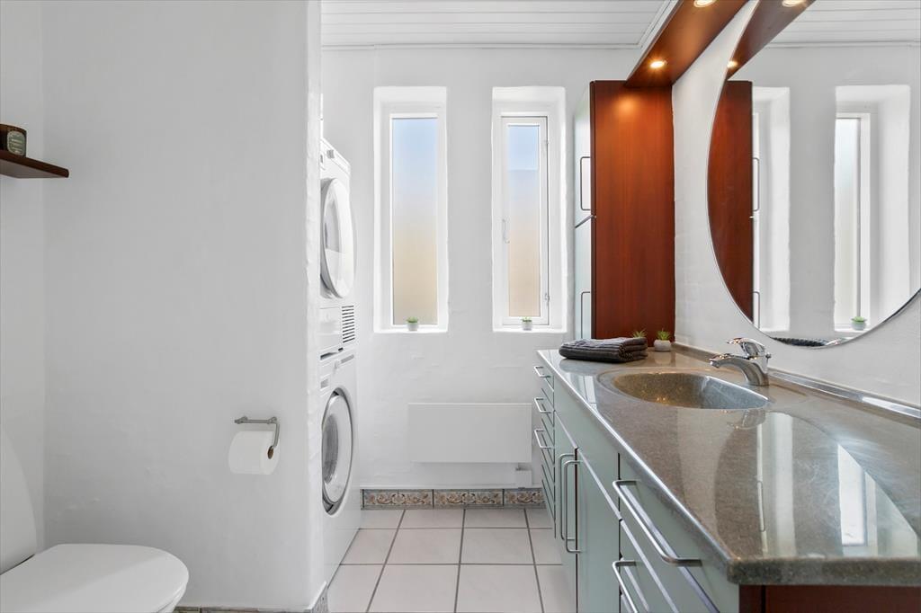 Central placeret i huset er det store køkken/alrum, hvor køkkenet indeholder alt, hvad I har brug for under jeres ophold af faciliteter til lækker madlavning, heriblandt opvaskemaskine, mikroovn, elkedel, kaffemaskine mm. Her kan I dagen lang nyde lysindfaldet og den meget flotte havudsigt.