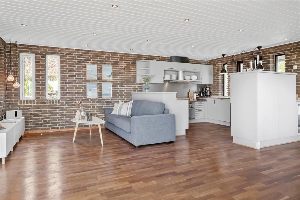 Information: Trægulvet i stue og køkken/alrum har en fejl i overfladen, så det fremstår mindre pænt med diverse mærker.
