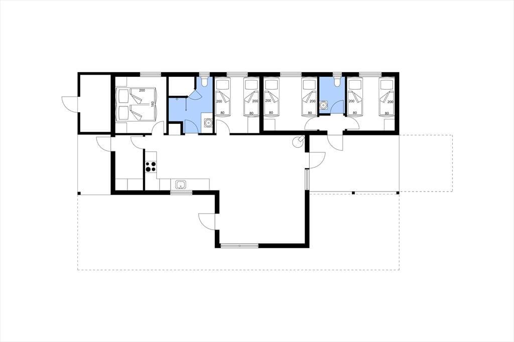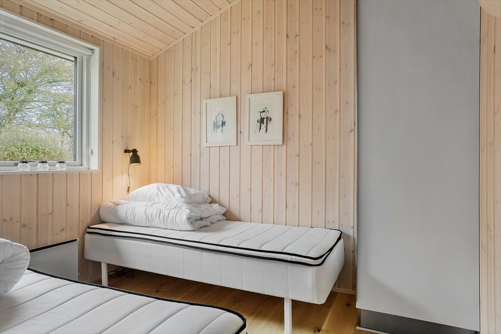 Sommerhuset har en moderne, hyggelig og smagfuld indretning, hvor der er plads til den store familie. Huset har hele fire gode soverum, fordelt med en dobbelt seng og tre gange to enkeltsenge - alle med gode madrasser og fine opbevaringsmuligheder til medbragt bagage.