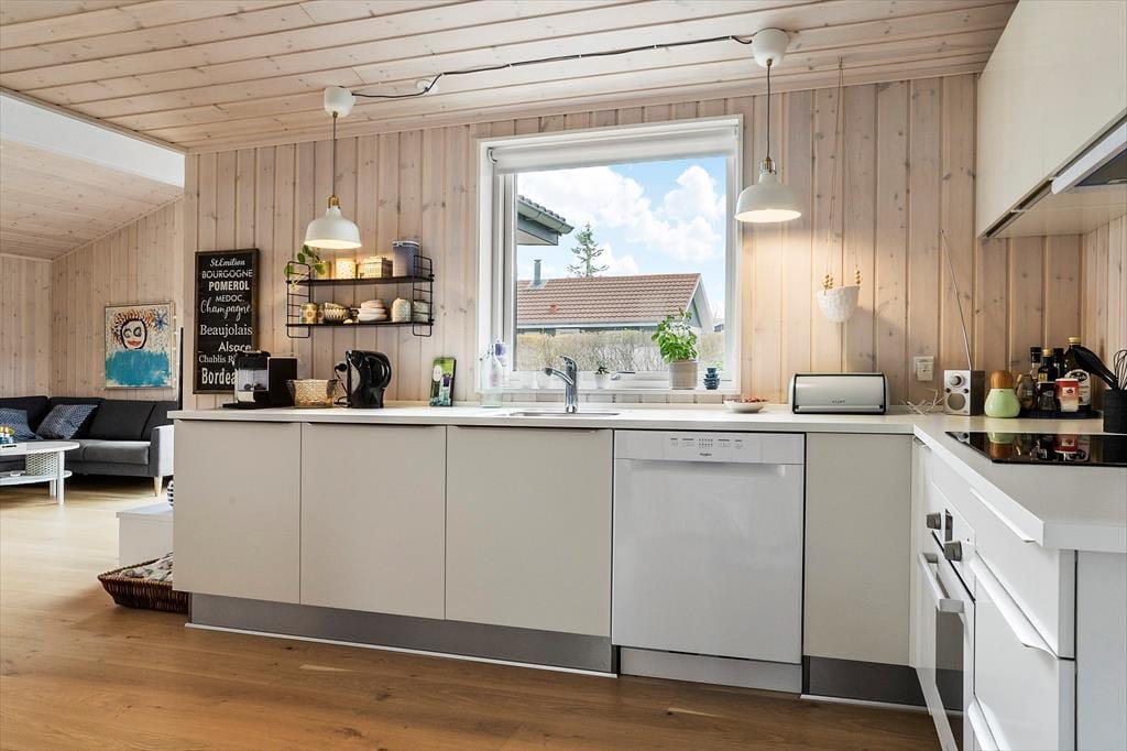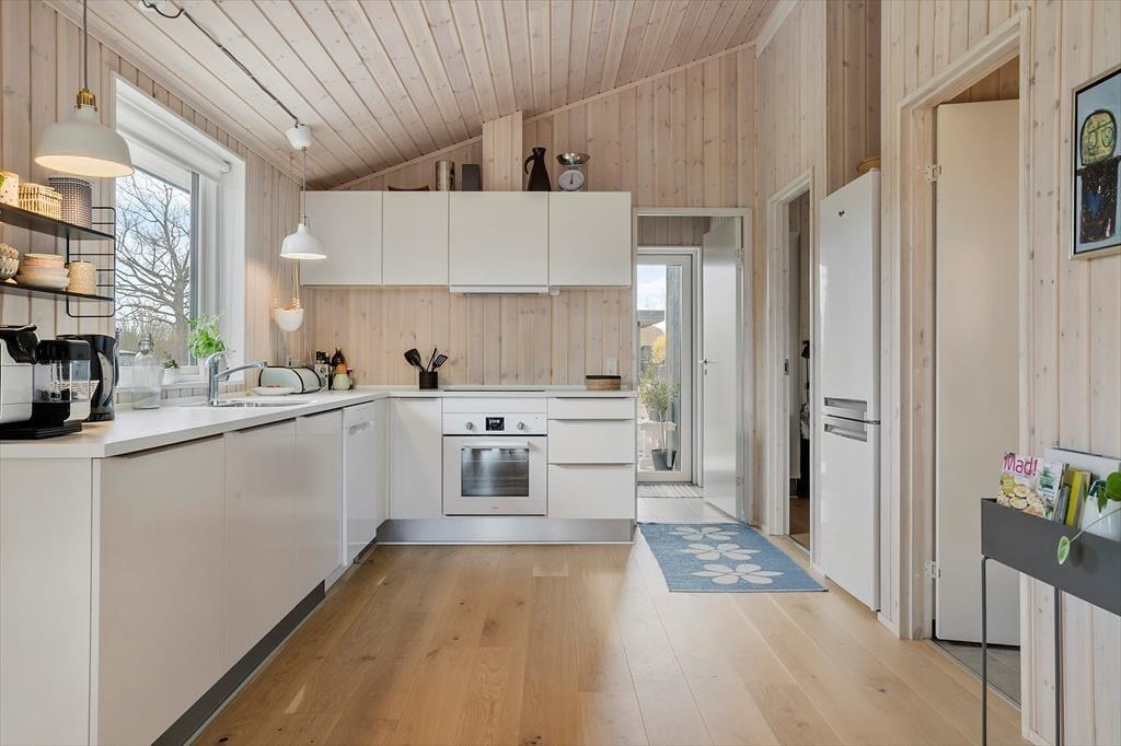 Køkkenet er stort og lyst og rummer alt det du har brug for under dit ophold. Ved spisebordet er der god plads til at samles om maden og nyde hinandens selskab.