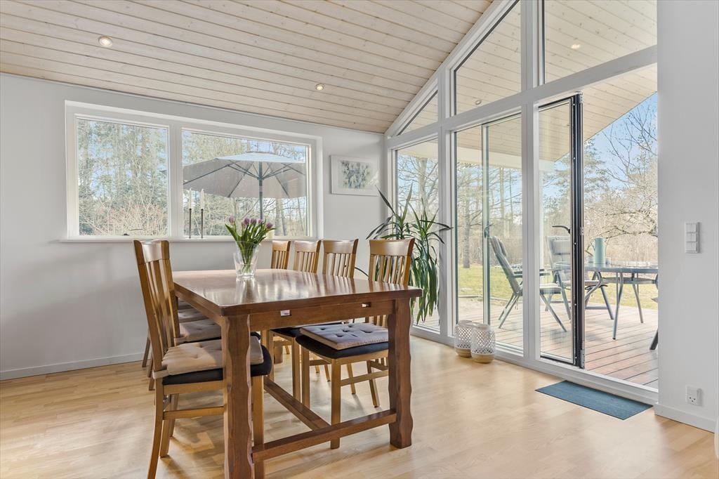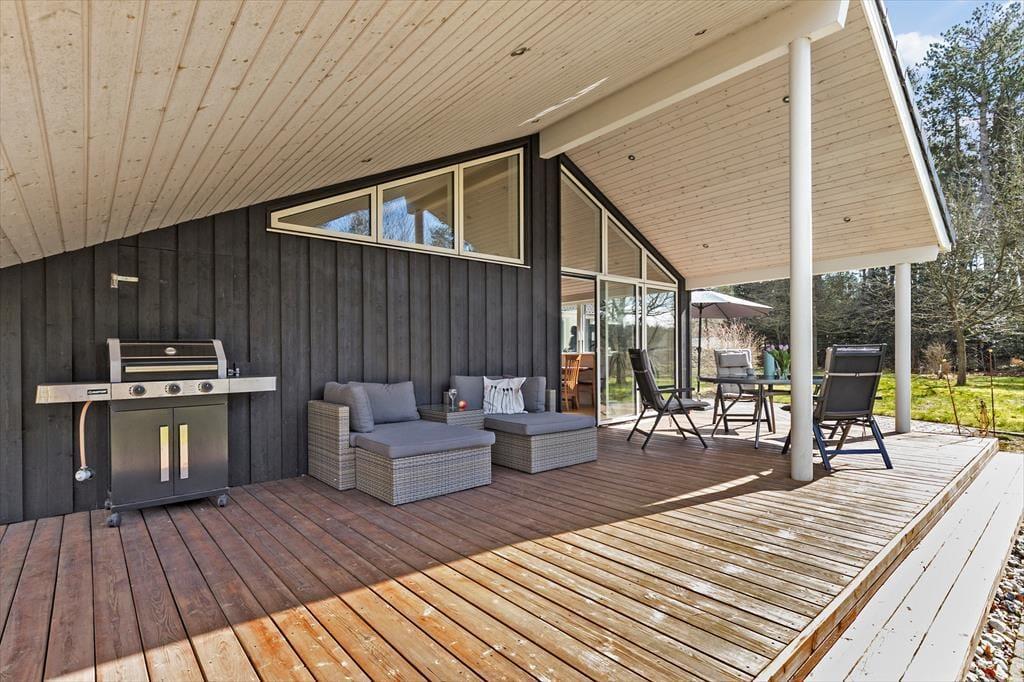 Den rummelige træterrasse er som skabt til afslapning og udendørs hygge. Start dagen med en kop kaffe i morgensolen, og lad børnene lege i haven, mens I planlægger dagens eventyr. Den tilbagetrukne beliggenhed giver jer mulighed for at nyde ferieroen i fulde drag, og grillen står klar til at skabe rammerne for hyggelige aftener med lækker mad under åben himmel. Når solen går ned, kan I samles omkring bålfadet og nyde den klare stjernehimmel over Djursland.