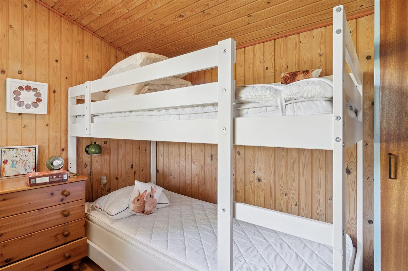 Der er i alt 3 soveværelser. Sovepladserne fordeler sig på: 2 sovepladser i enkeltsenge. 4 sovepladser i køjesenge. Derudover er der 1 stk. barneseng.