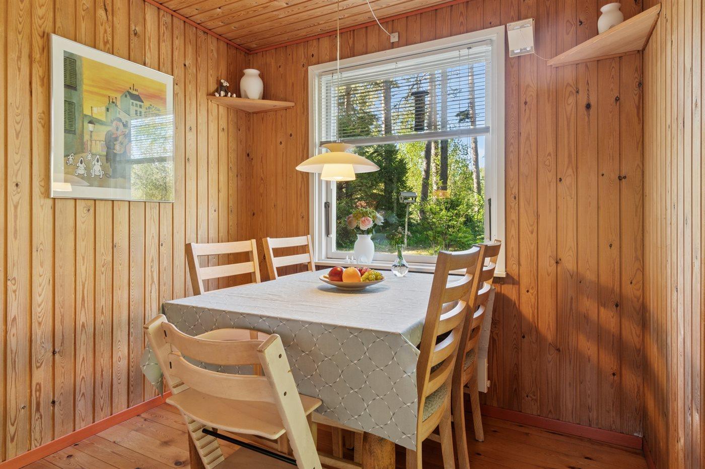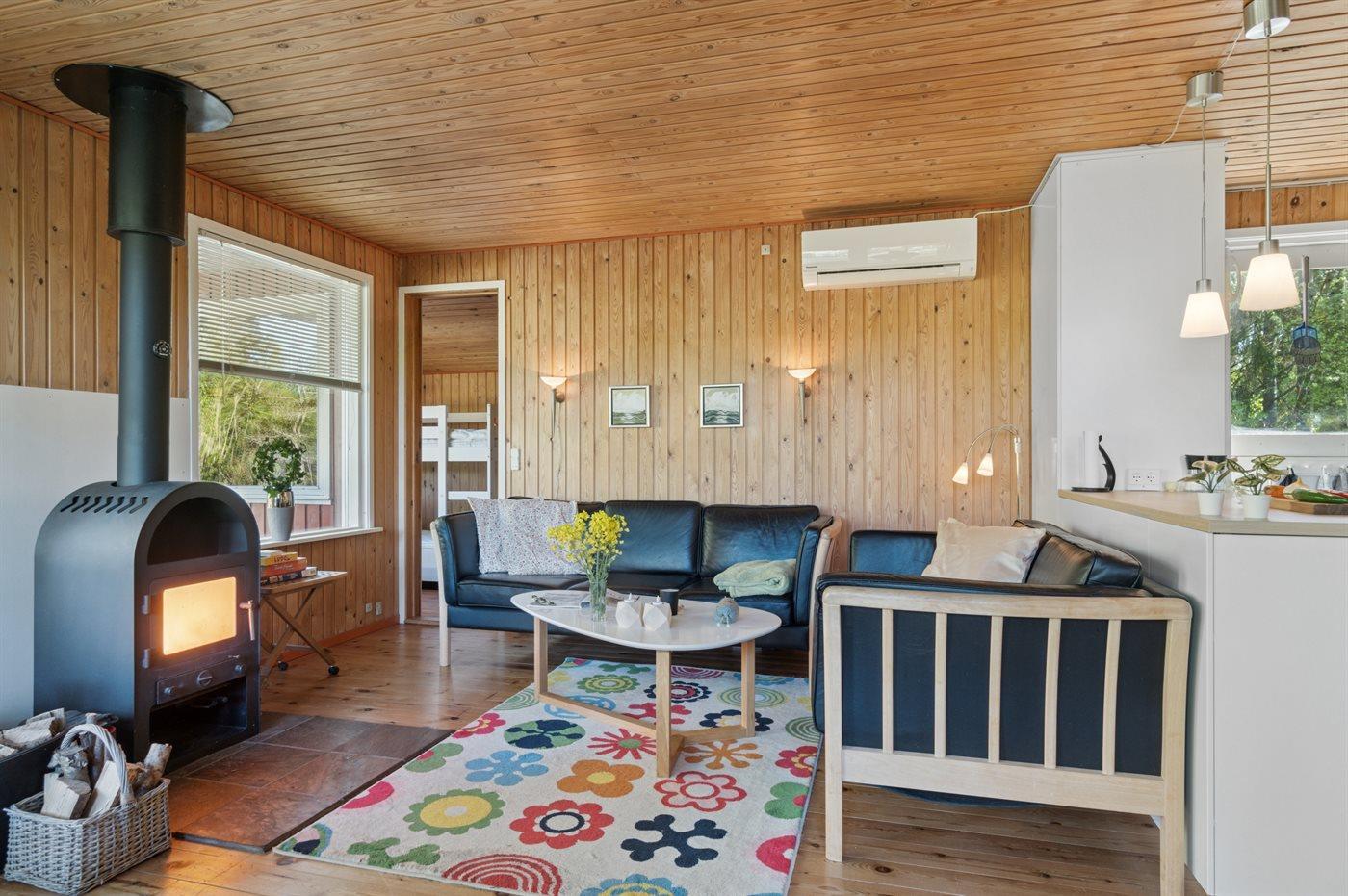 Sommerhuset egner sig til 5 personer samt 1 barn op til 3 år. Ferieboligen er på 57 m² og er bygget i 1978. Det er tilladt at medbringe 2 husdyr. Ferieboligen er udstyret med 1 energivenlig luft til luft varmepumpe. Ferieboligen har vaskemaskine. Tørretumbler. Frysekapacitet på 20 liter. Der er desuden brændeovn. Til de små er der 1 stk. barnestol.