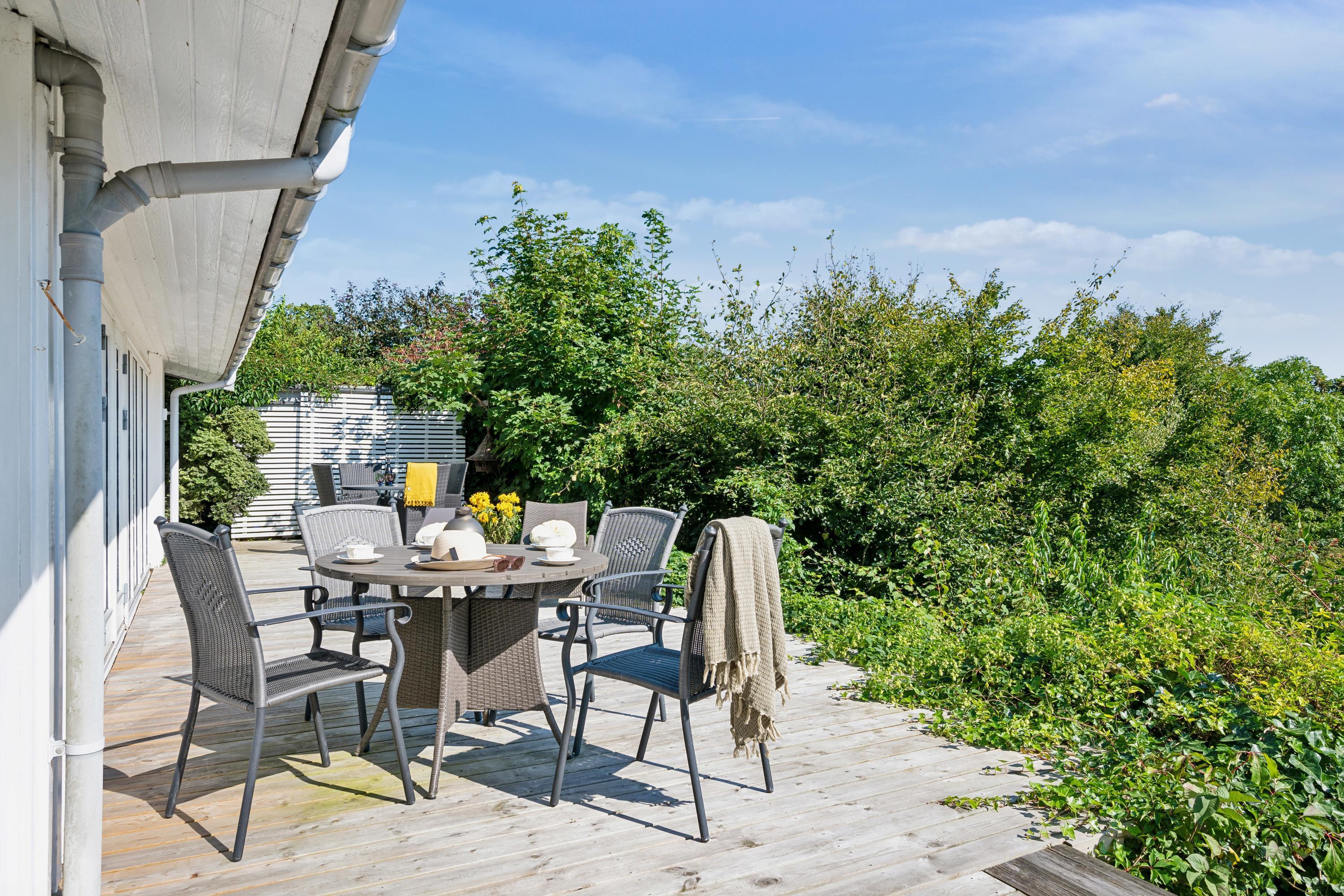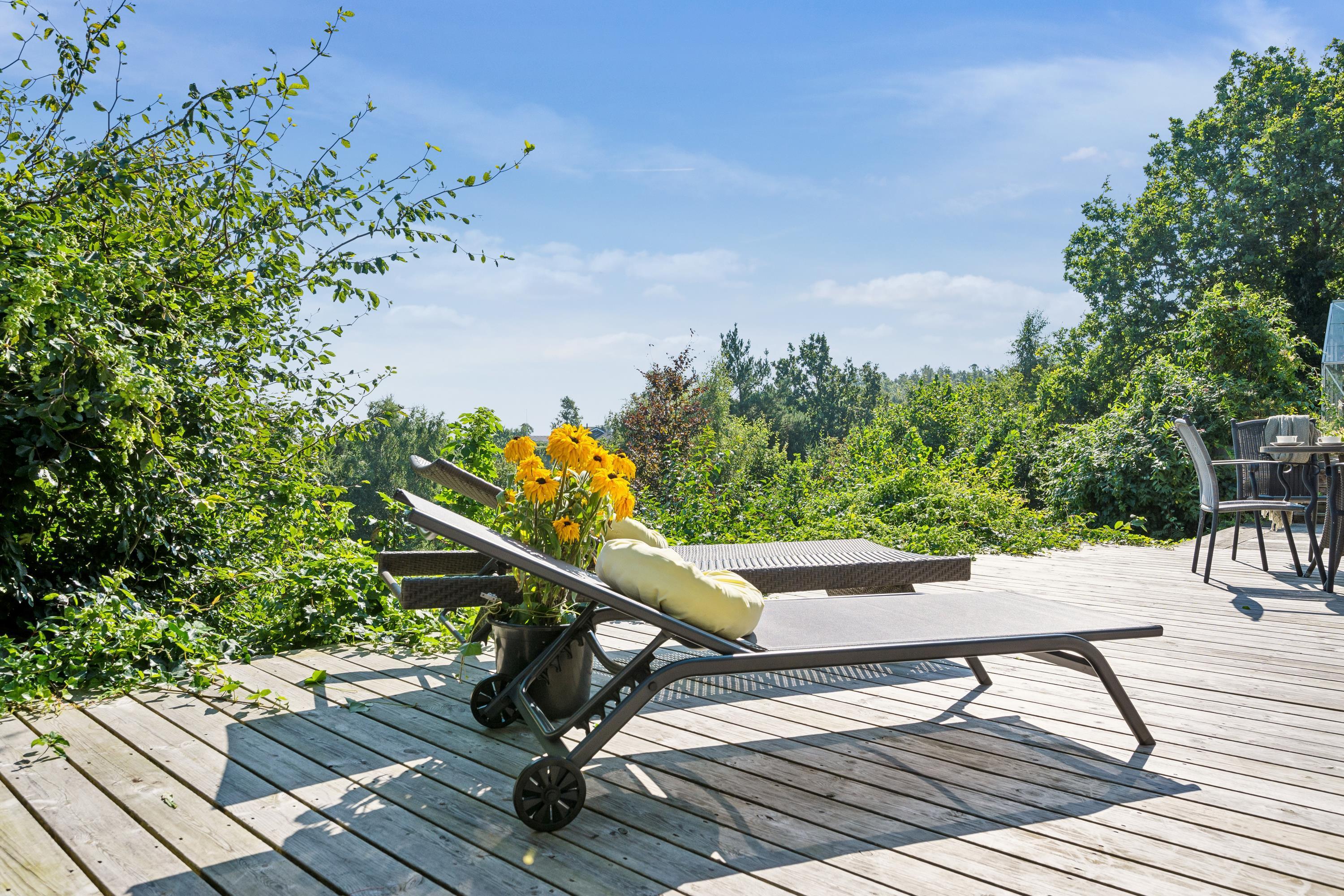 Tæt på Ebeltoft By finder man dette unikke og rummelige feriehus i to plan. I stueplan finder man en hyggelig stue med brændeovn, samt spiseafdeling der ligger i forbindelse med det hyggelige køkken. Her er udgang til den store terrasse med havemøbler og den smukkeste udsigt, hvorfra man i det fjerne kan se vandet ved Boeslum Strand. I stueplan finder man også to store soveværelser med dobbeltsenge samt badeværelse med bruseniche. I underetagen finder man den hyggelige opholdsstue- også herfra er der udgang til en skøn terrasse med havemøbler og liggestole. Endnu et dejligt køkken med opvaskemaskine og et skønt badeværelse. Tre hyggelige værelser, hvoraf det ene indeholder to dobbeltsenge. Der er også adgang til både vaskemaskine og tørretumbler. Der er nedgang til underetagen fra stueplan, men også separat indgang udefra. Der er internet i huset og TV foregår via Chromecast. Der er lige lavet en spritny sauna ved underetagen. Ved huset er der flere skønne terrasser i forskudt plan og i haven finder man flere lækroge. Derudover findes der et skønt orangeri, hvor man kan tilbringe en kølig aften. Er man to eller tre familier afsted, er det her, det helt rette hus.