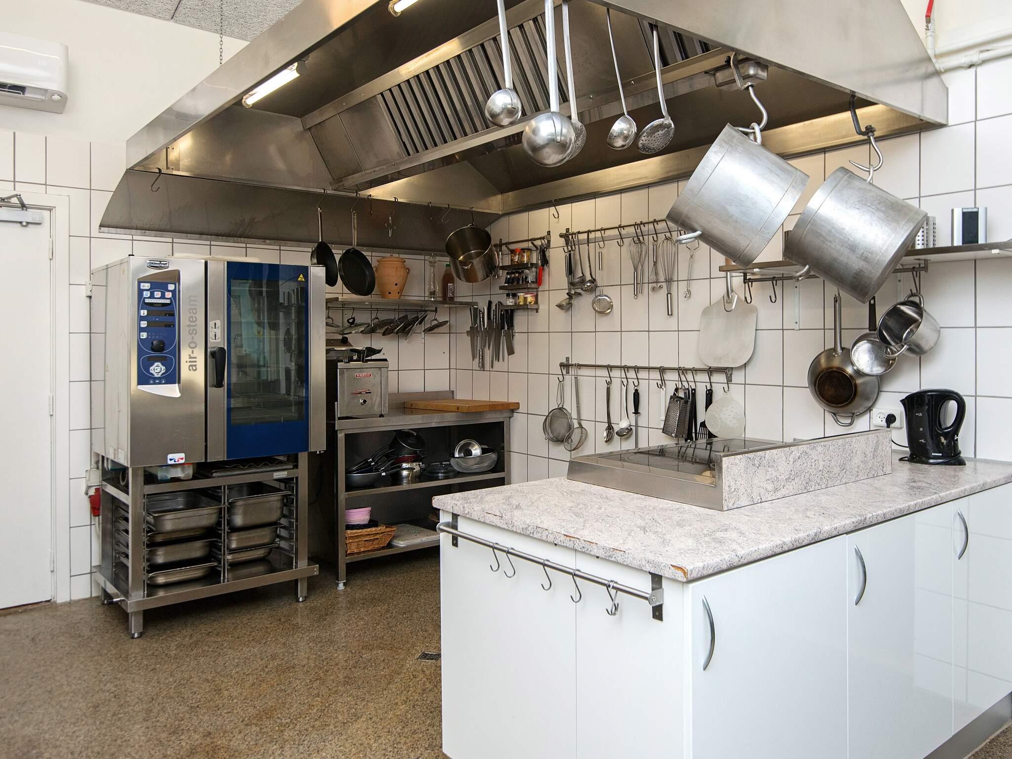 Der er lige så mange badeværelser og køkkenet er tilsvarende stort, så maden til alle personer kan laves samtidig med at man hygger med hinanden. Der er både terrasse og stort spiserum, så lige meget hvordan vejret er, så kan alle sidde sammen og spise. Der er også aktivitetsrum med bl.a. bordfodbold og dart.