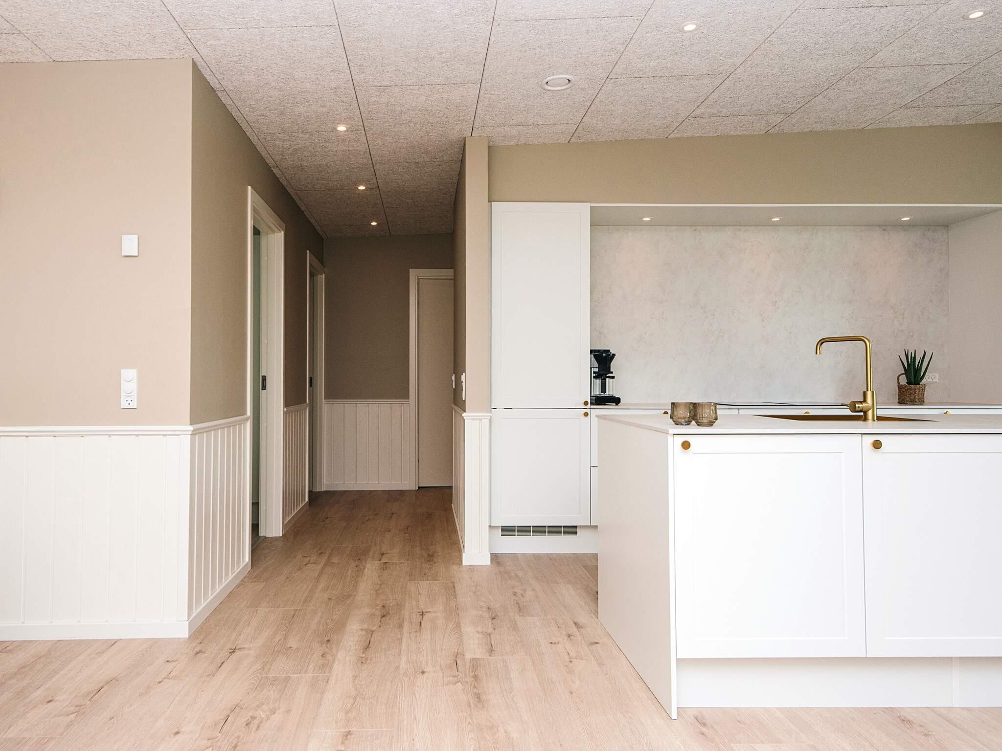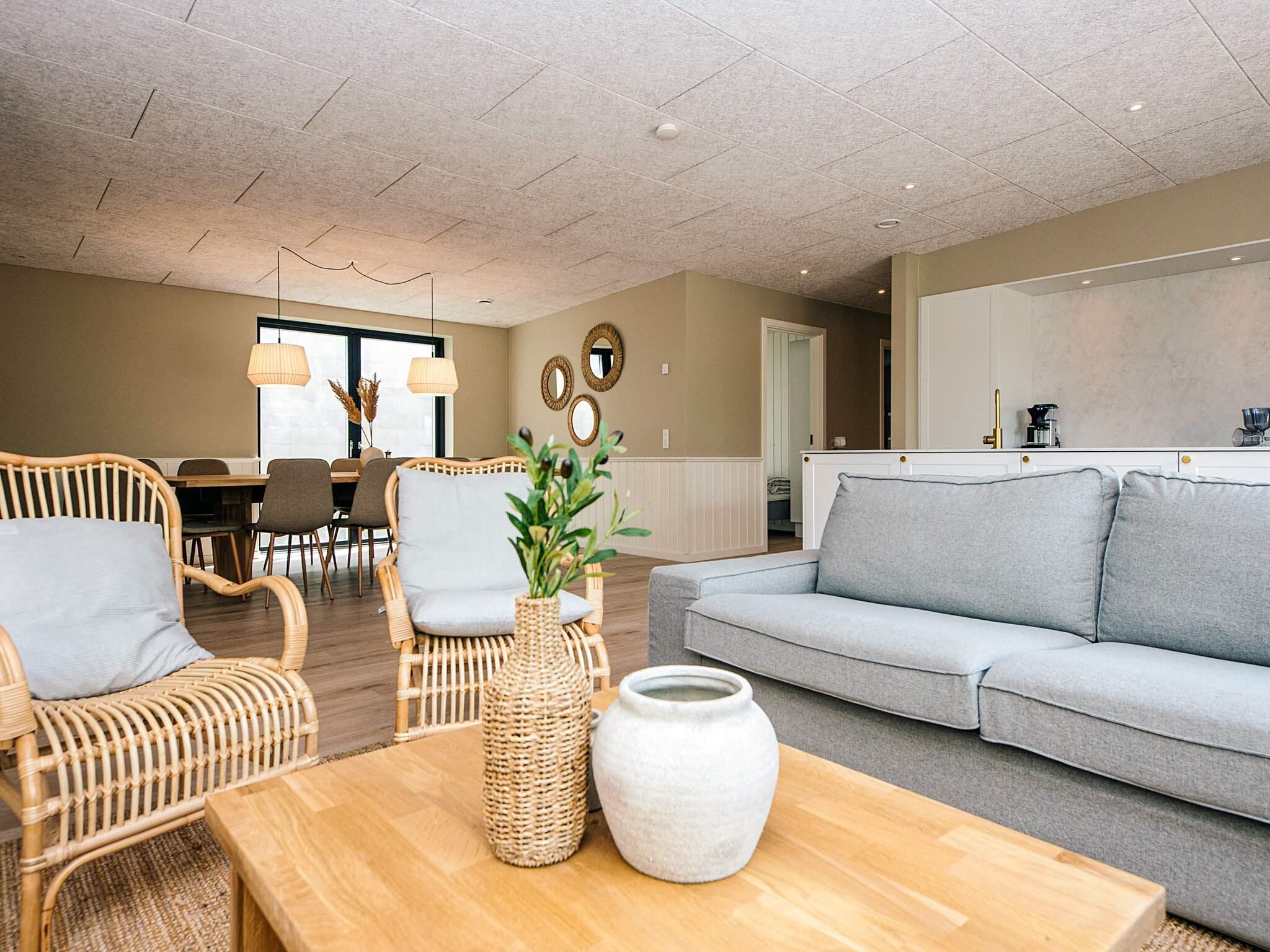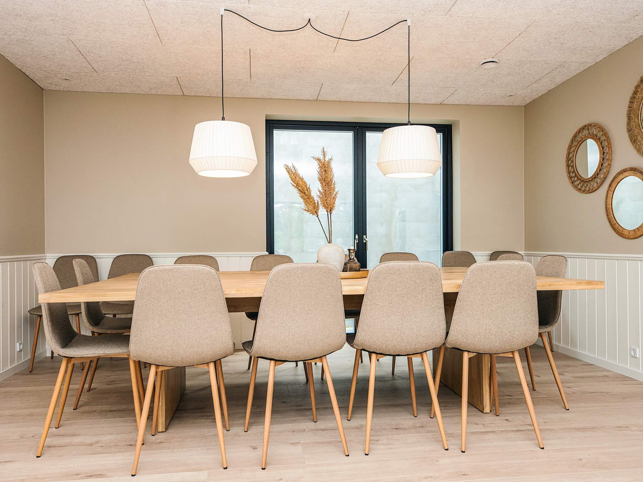 Her er plads til 16 personer fordelt på syv soveværelser, så både store familier og vennegrupper kan samles under ét tag. Huset har et stort og lyst køkken-alrum med et rummeligt spisebord, perfekt til hyggelige middage og lange spilleaftener.