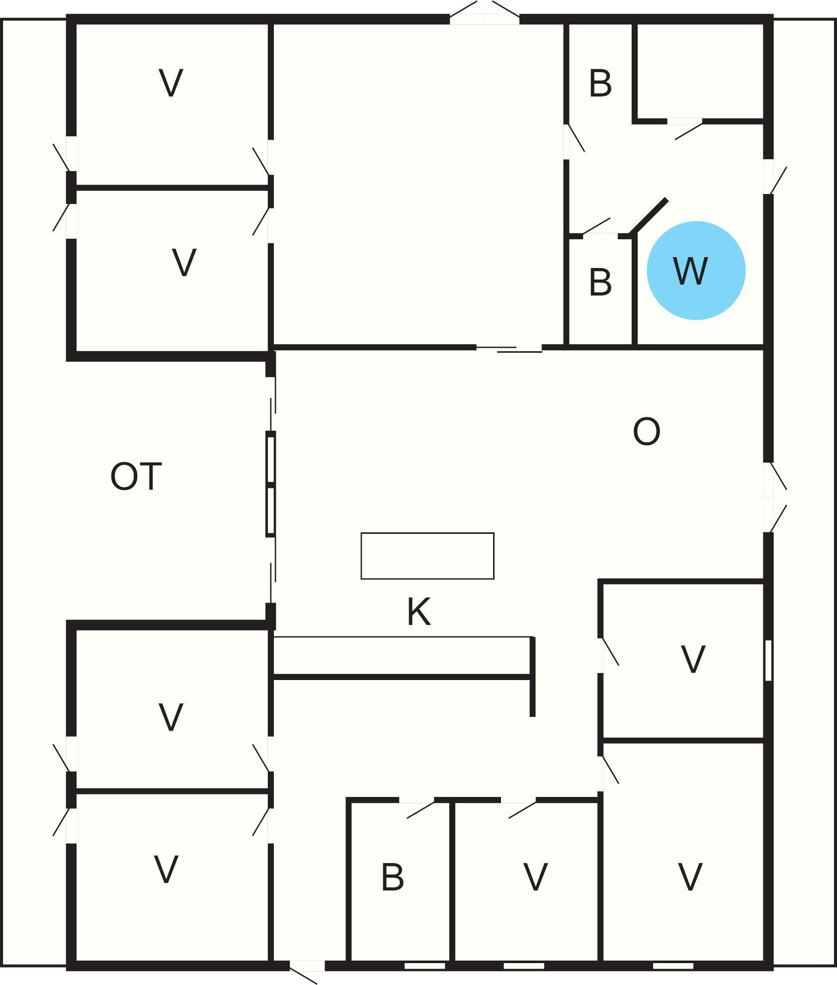 7 Soveværelser: (1DS)+(1DS)+(1DS)+(1DS)+(1DS)+(1DS)+(4K)