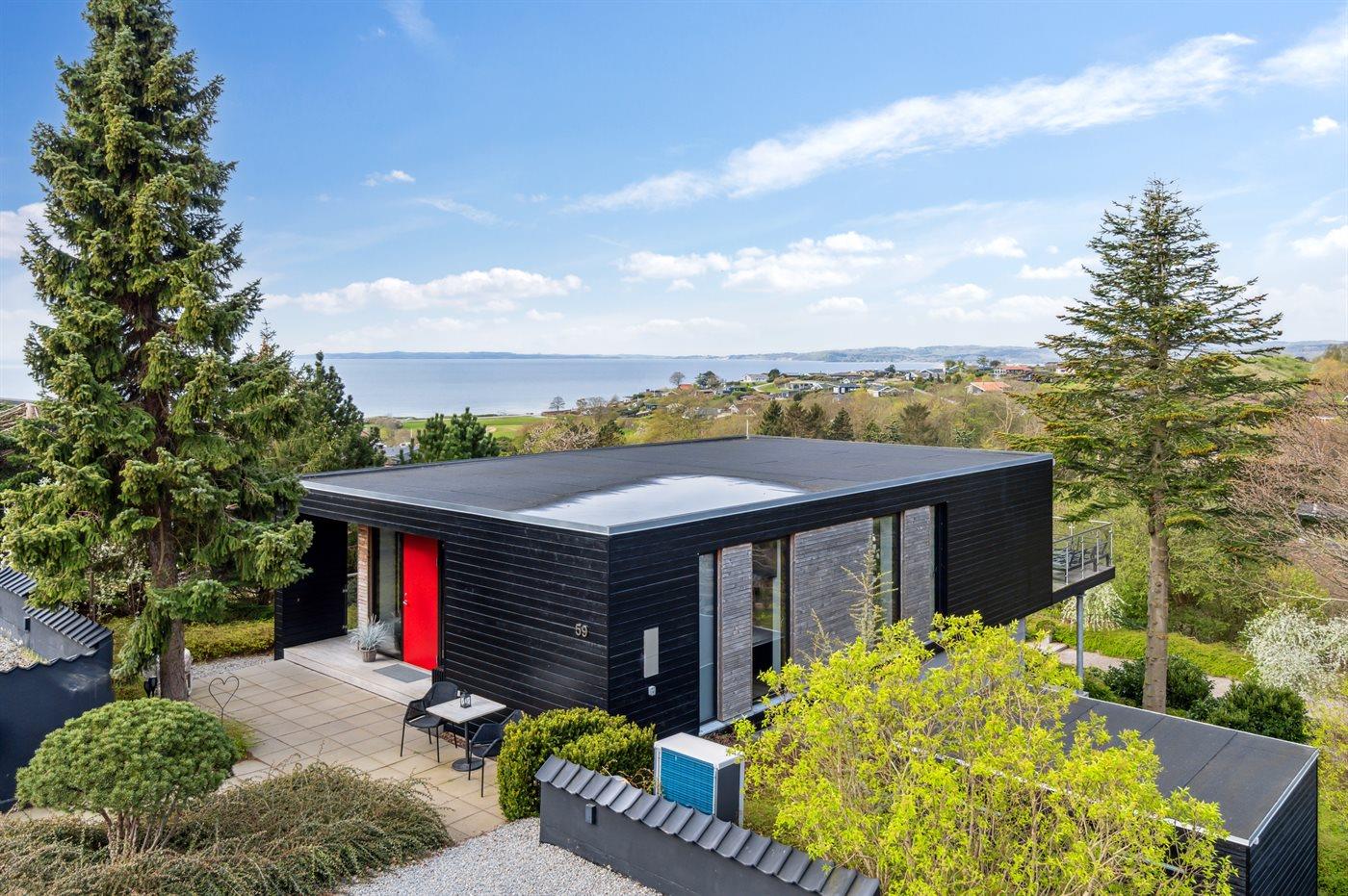 Smukt sommerhus i Ebeltoft med luksuriøs indretning og fantastisk havudsigt på 1200 m² naturgrund.