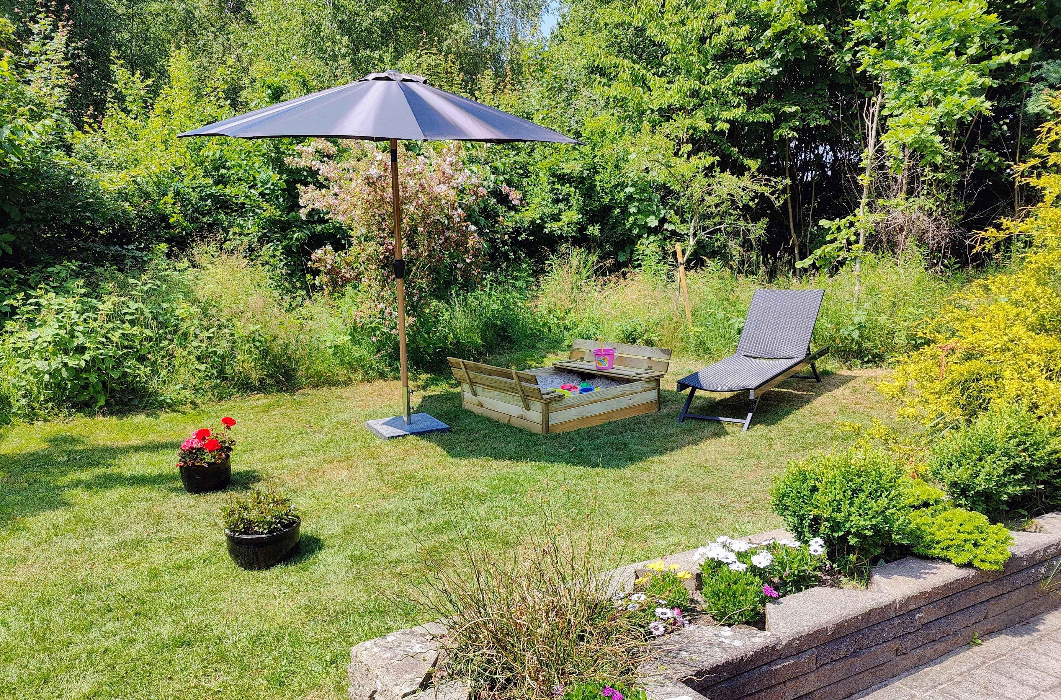 Hyggeligt sommerhus tæt på strand og Ebeltoft bymidte med stor grund og plads til afslapning.