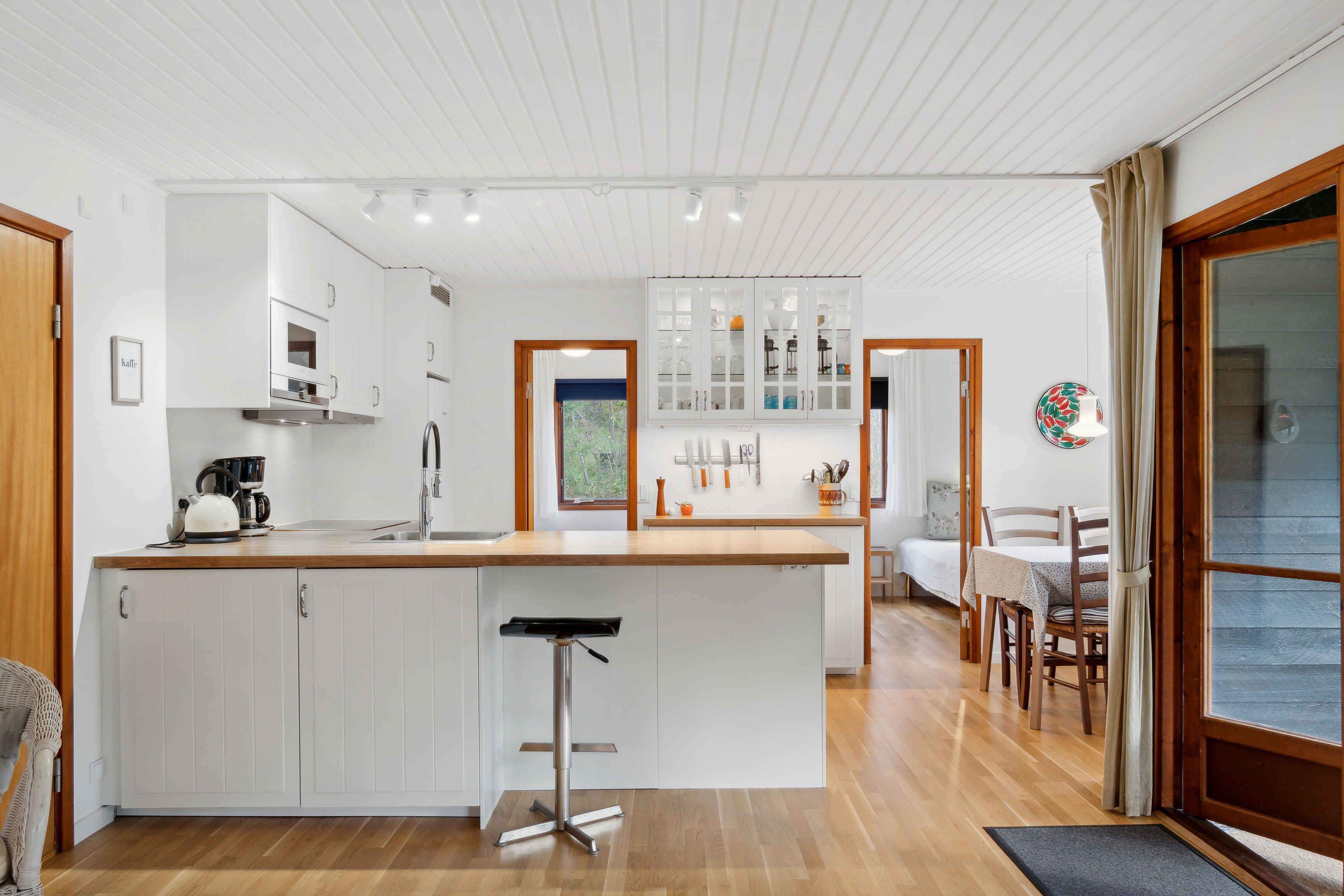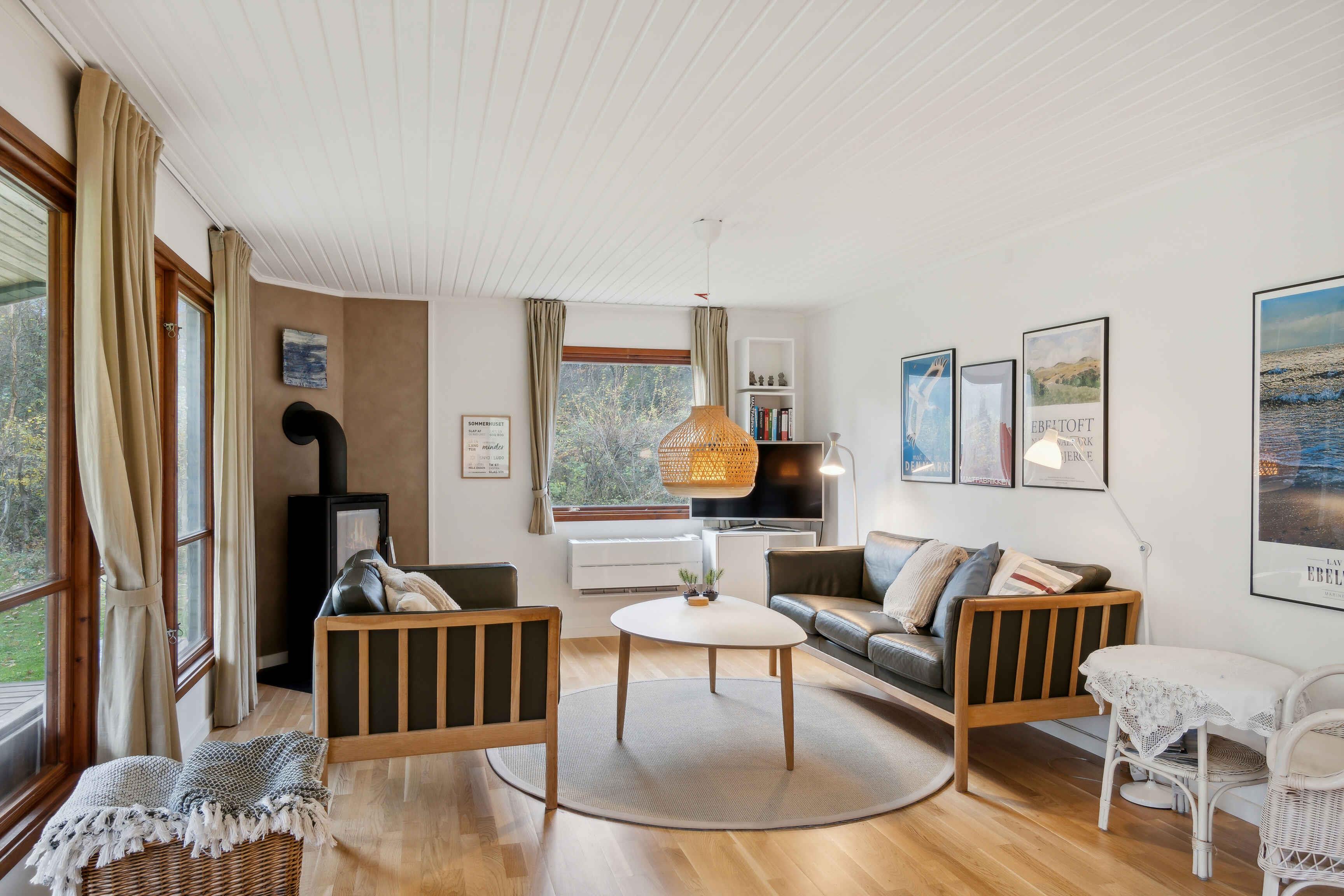 Dette charmerende sommerhus byder på en uforstyrret ferieoplevelse i naturskønne omgivelser nær Ebeltoft. Her kan I nyde en rolig atmosfære, ideel for familier, der søger afslapning og fællesskab. Sommerhuset rummer tre soveværelser og har plads til seks gæster, hvilket gør det perfekt til en familie eller et lille selskab. Med et rummeligt køkken-alrum, brændeovn og et lille ekstra rum med skrivebord kan alle finde deres plads i huset. Udendørs venter en stor grund omgivet af træer, som skaber privatliv og mulighed for afslappede dage med aktiviteter og hygge i naturen. I har stranden tæt på, kun 300 skridt væk. Ebeltofts hyggelige bymidte er fem minutters kørsel fra huset og byder på butikker, restauranter og kultur. Her finder I både seværdigheder som Fregatten Jylland og Glasmuseet, og en smuk, historisk bydel. Bemærk, huset udlejes ikke til ungdomsgrupper. Obs, udlejes ikke til erhversmæssigt brug.