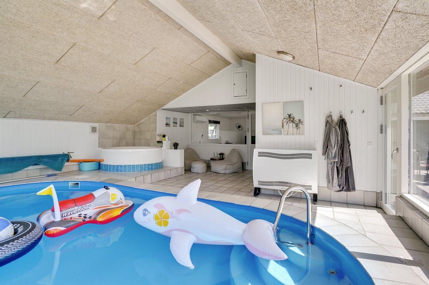 I den indendørs swimmingpool er der mulighed for leg og hyggeligt samvær. Swimmingpoolen måler op til 3 m i bredden, 6 m i længden og den er op til 1,2 m dyb. Vandet er mellem 26 og 29° C varmt. Der er gulvvarme i swimmingpoolområdet.