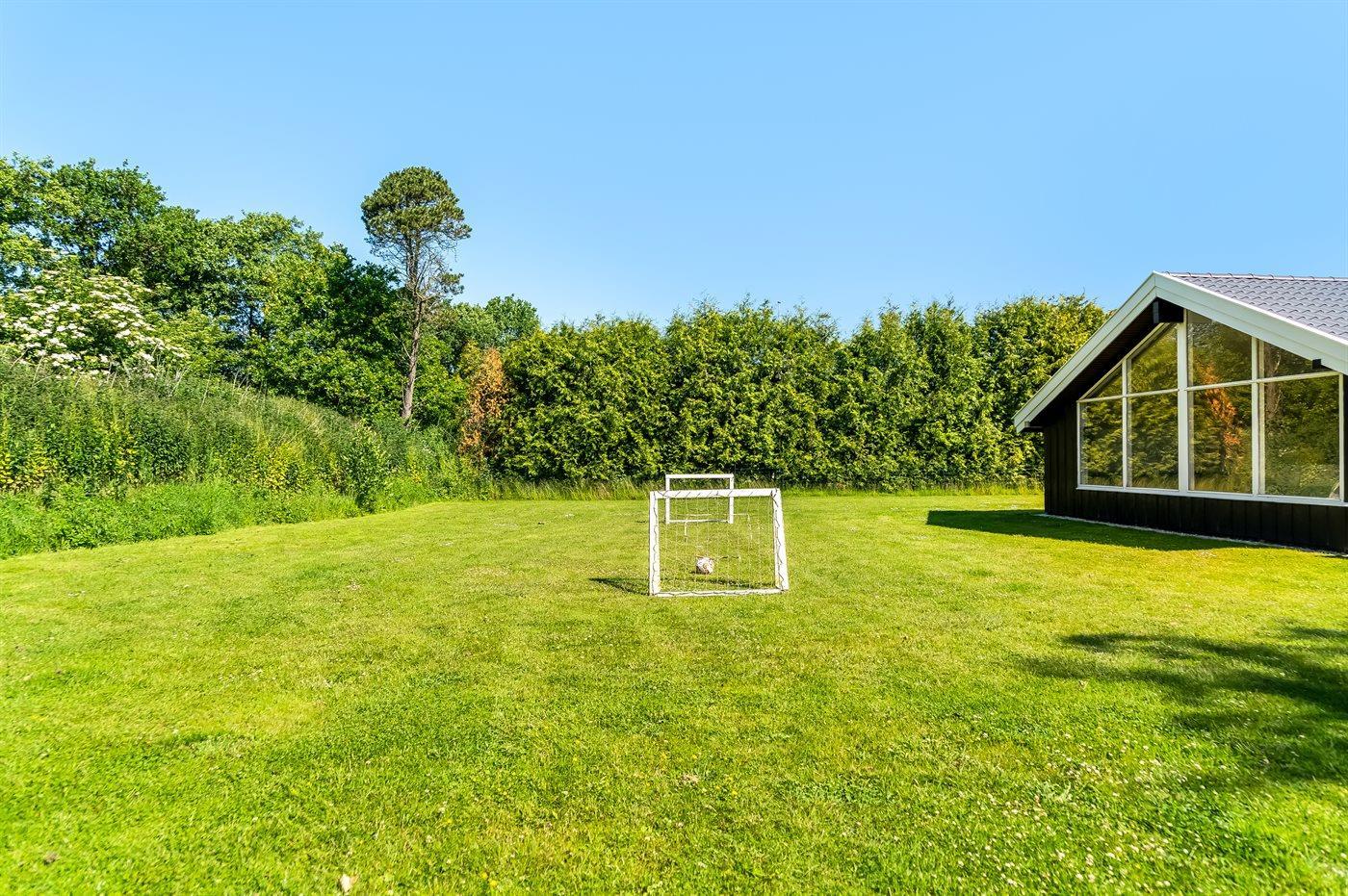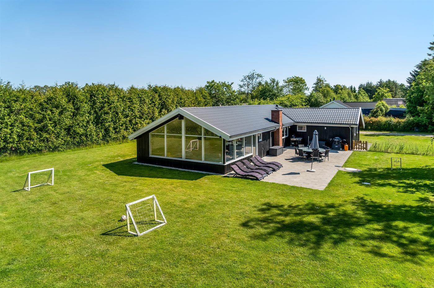 Ferieboligen er beliggende på en 1500 m² stor havegrund. Grunden er indhegnet. Der er 1300 m til havet. Der er 700 m til fjorden. Nærmeste forretning er beliggende i en afstand af 650 m. Til ferieboligen hører 100 m² terrasseareal. Der er redskabsrum. Sandkasse. Fodboldmål. Bålsted. Grill til rådighed. Der er installeret stik til opladning af elbil. Parkering ved ferieboligen.