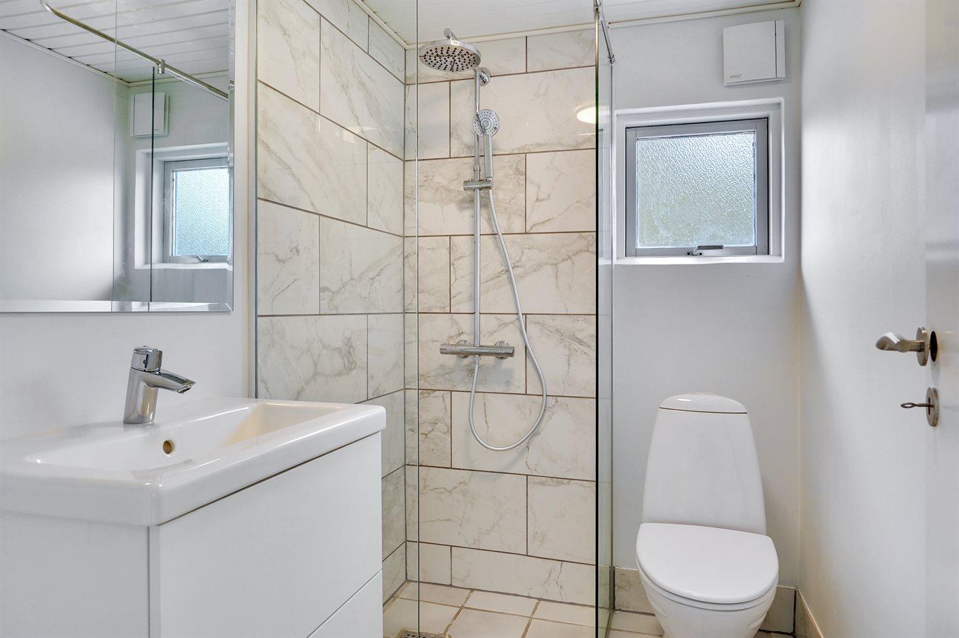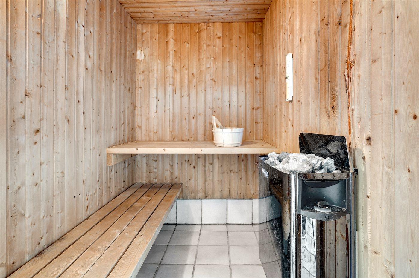 Der er 2 badeværelser med bruseniche og 2 toiletter. Der er gulvvarme på 2 badeværelser. I saunaen er der mulighed for afslapning.