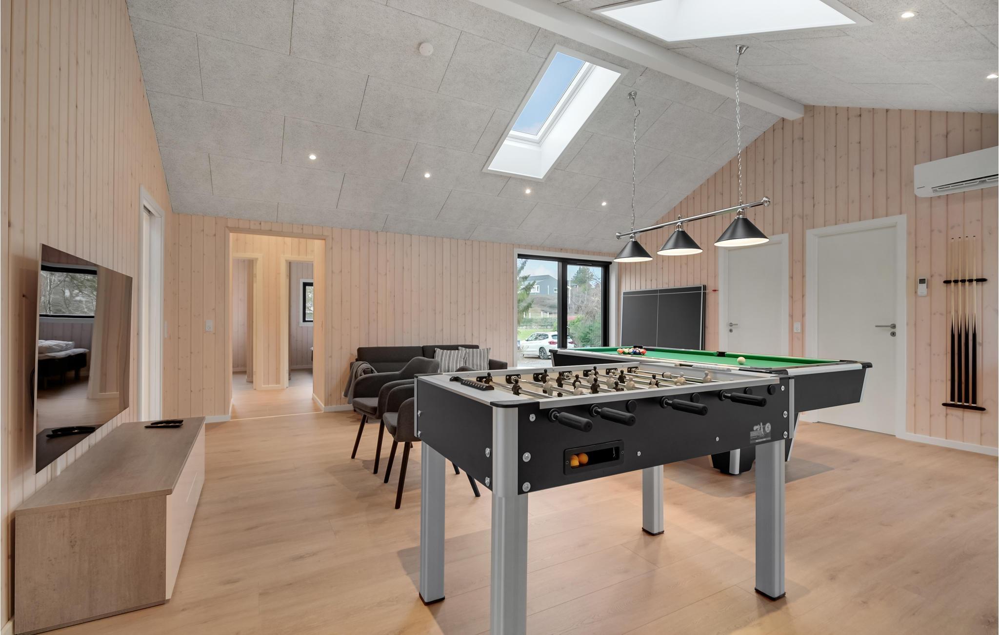 I kan også se frem til et aktivitetsrum med poolbord og bordfodbold, hvilket garanteret vil være et hit hos både børn og voksne. Udendørs er der også gode rammer til, at børnene kan lege, mens de voksne måske tager en hvilepause i det behagelige vildmarksbad. Den overdækkede terrasse støder op til husets store gårdhave, hvor I kan nyde aften- og morgentimerne, også efter duggen er faldet.