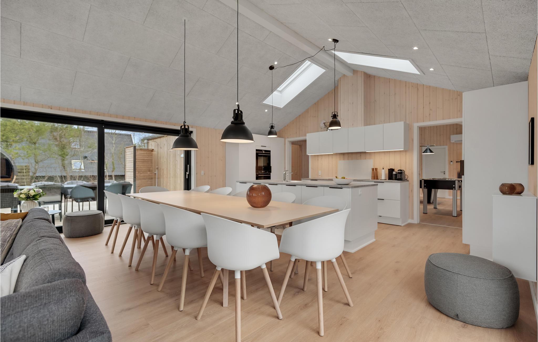 Huset er moderne i arkitektur, indretning og materialer, så her kommer I til at omgive jer med komfort på en helt ny måde. Boligen er indrettet med flere gode soveværelser og har plads til 12 personer. Badeværelserne har flotte faciliteter og gør det nemt at dele sig op om morgenen, så I hurtigt kan komme videre ud på eventyr.