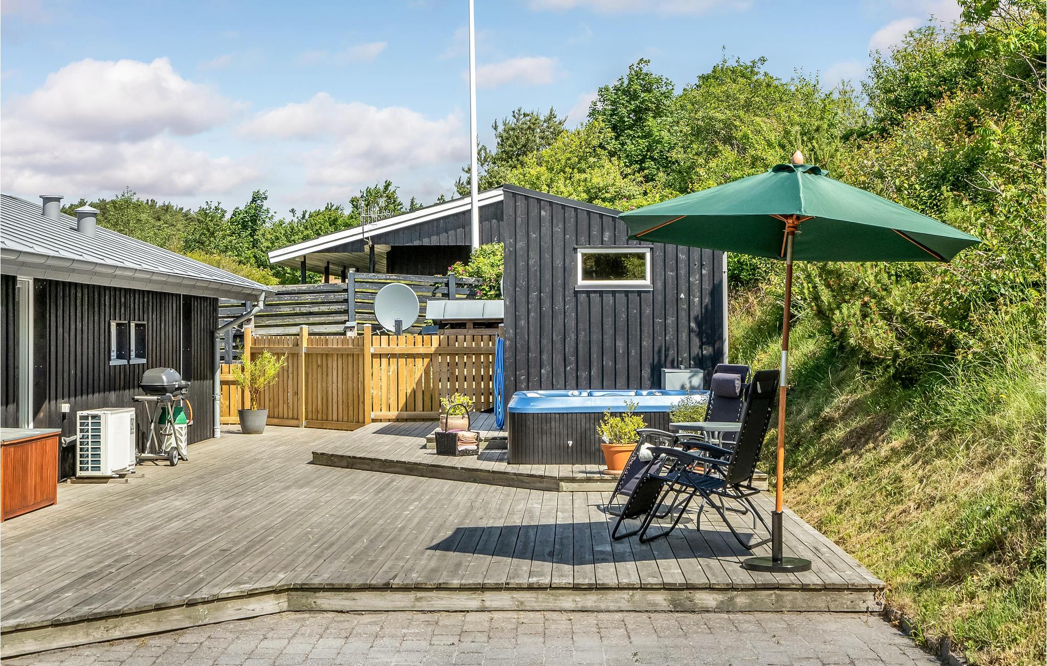 Sommerhus ved Egsmark Strand med havudsigt, stor terrasse og udendørs spabad, tæt på strand og Ebeltoft by.