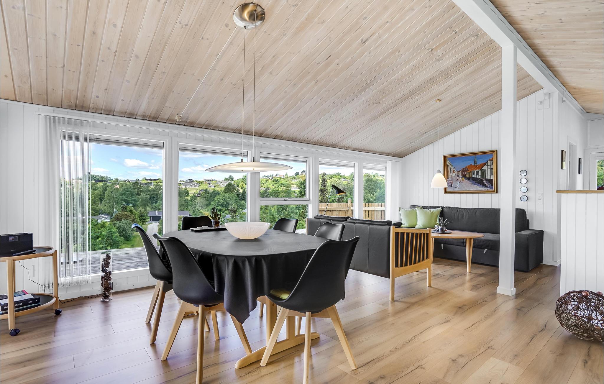 Dejligt højtbeliggende sommerhus på en skrående grund, holdt i lys, personlig og moderne stil. Her er 180 m² træterrasse med udendørs spabad, så udelivet kan virkelig nydes i fulde drag. Virkeligt dejligt sommerhus for en familie eller et par, som ønsker sig en ferie både i ro og fred, samt i tæthed til strand og by. Gåafstand via stisystem til badestrand med badebro. 5 min. i bil til Ebeltoft by, hvor der kan tilbringes mange timer. Her er bl.a. en lang række specialbutikker, cafeer og restauranter, men også Glasmuseum og Rådhuset fra 1576, hvor mange kommer rejsende til langvejs fra, for at blive gift. Besøg også Fregatten Jylland, hvor I kan få fornemmelsen af, hvordan livet som sømand var dengang.