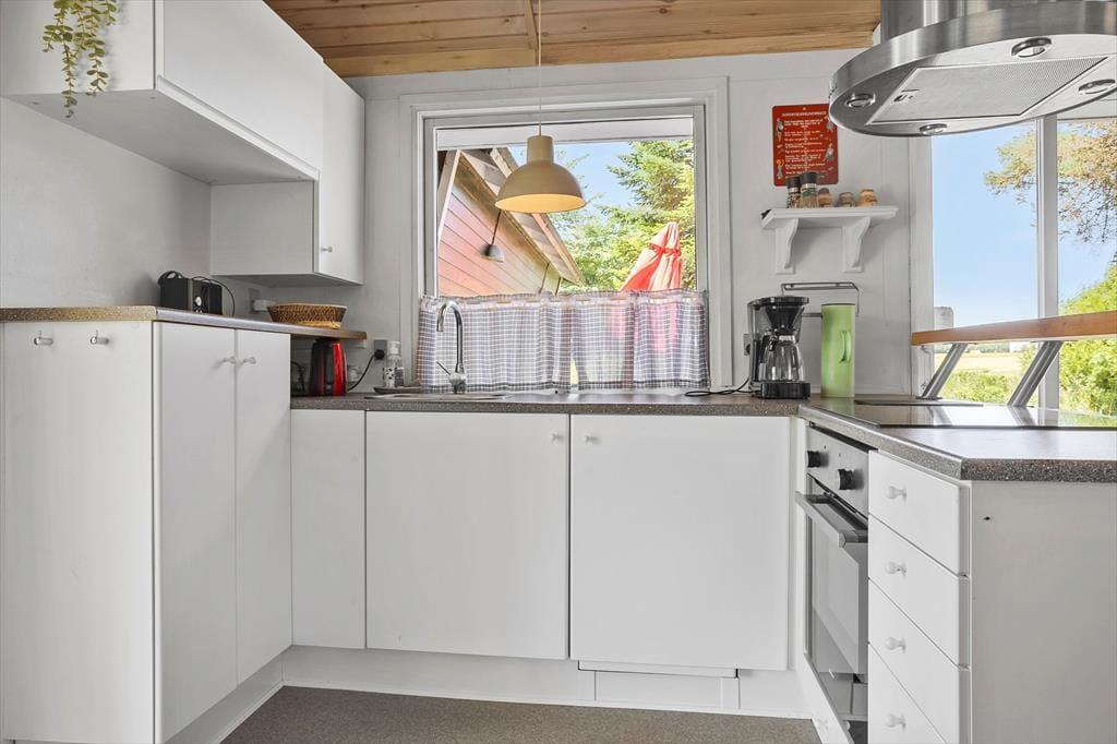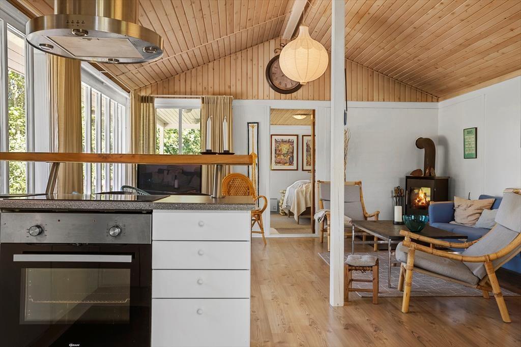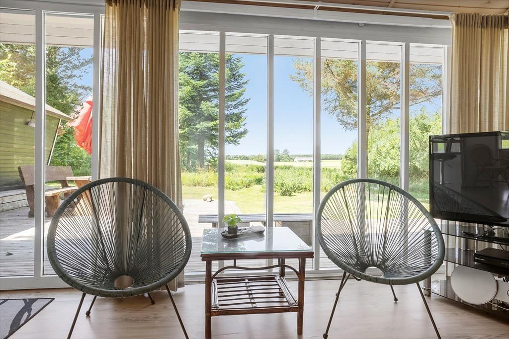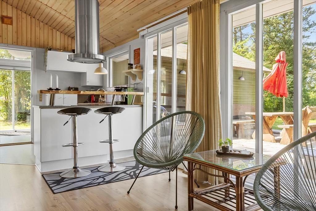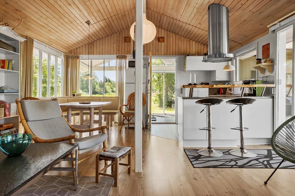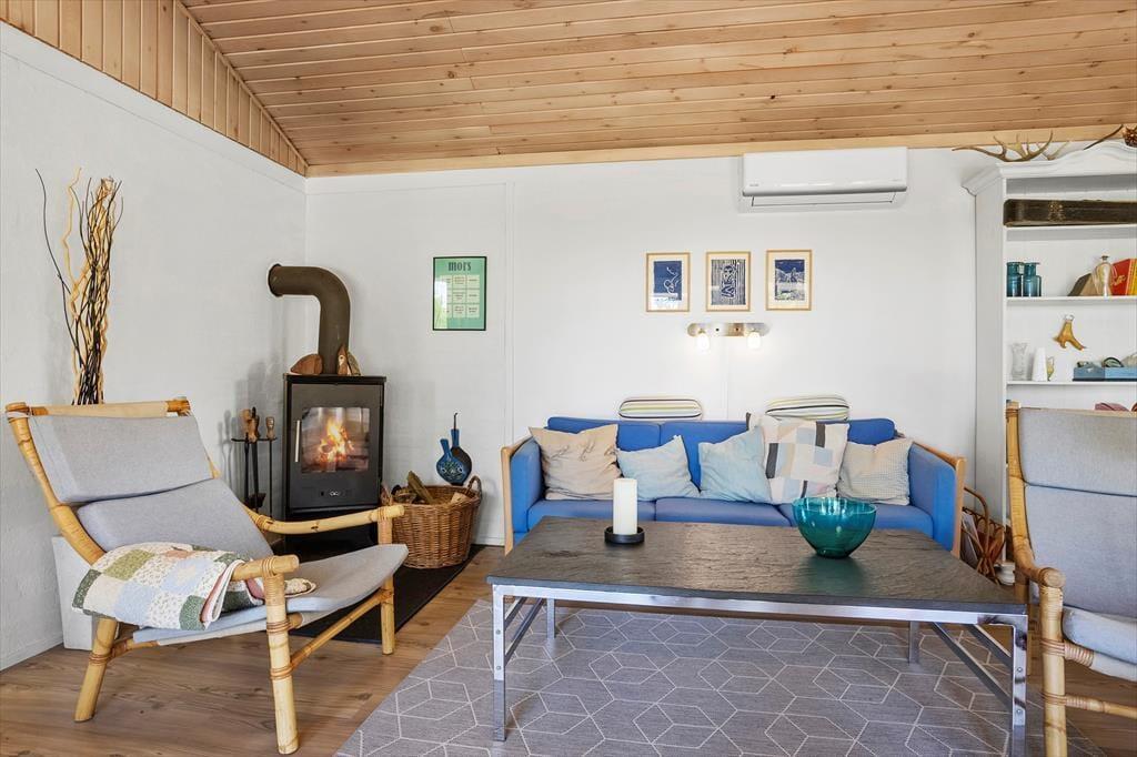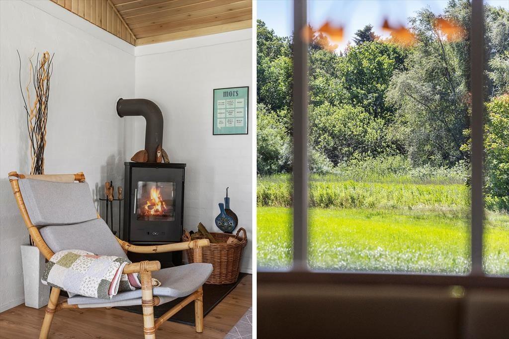 Når I træder ind i det hyggeligt indrettede sommerhus, mødes I af en lys og venlig atmosfære, der indbyder til feriehygge fra første øjeblik. Her er der plads til både afslapning og samvær, hvad enten I slænger jer i sofaen foran brændeovnen med et tæppe og en god bog, eller samles om et måltid mad i det åbne opholdsrum. Brændeovnens knitren og duften af nymalet kaffe sætter stemningen for en ferie, hvor tempoet gerne må være lidt lavere end derhjemme. Det er let at føle sig hjemme her, uanset om det er en familieferie eller en venneweekend, I er taget afsted på – og huset er indrettet, så alle kan finde deres favoritsted at trække sig tilbage til.